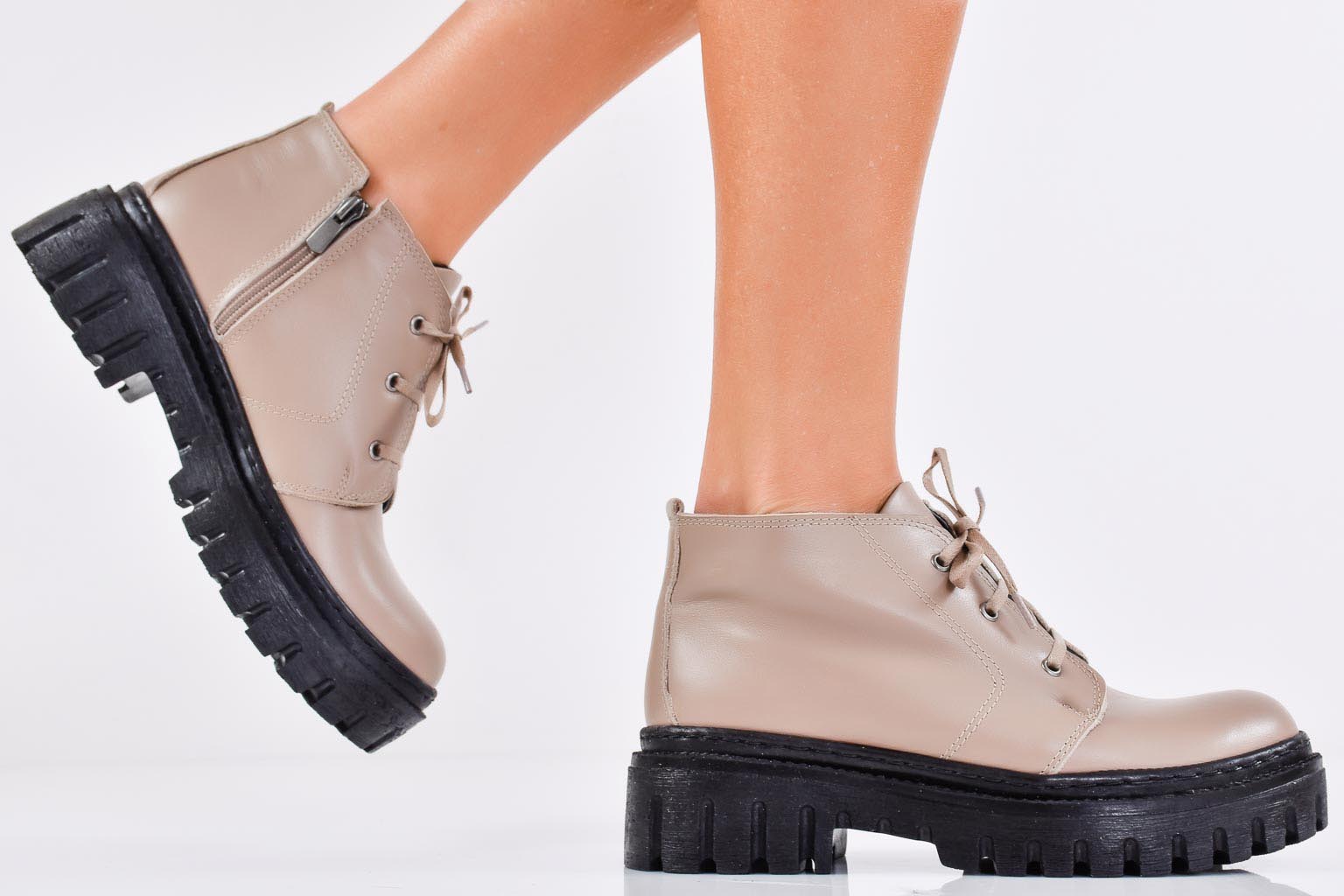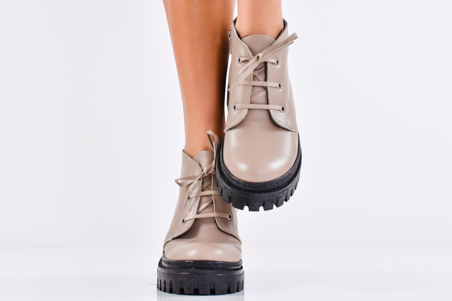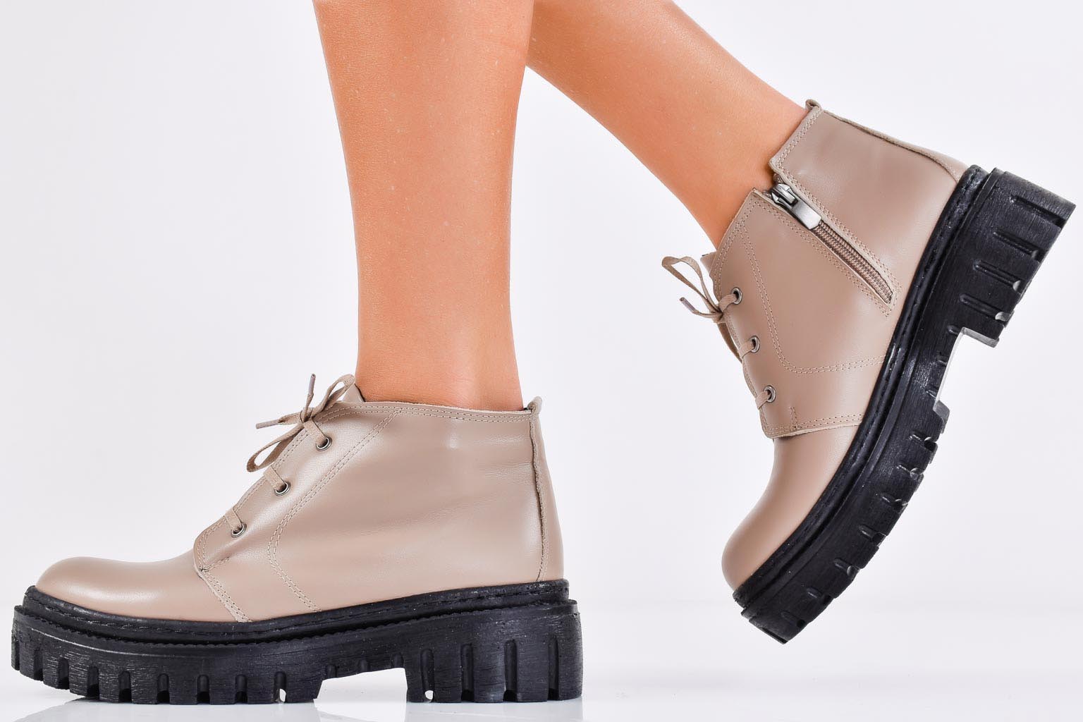 Дамски боти естествена кожа бежови EOBUVKIBG #502-7089