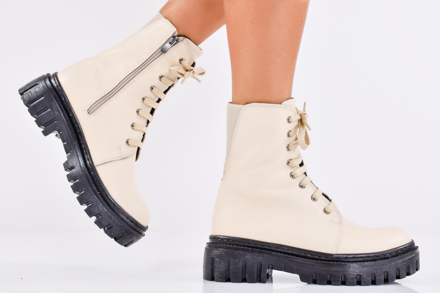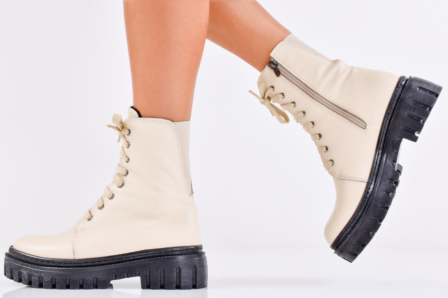 Дамски боти естествена кожа бежови EOBUVKIBG