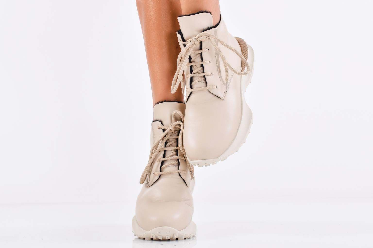 Дамски боти естествена кожа бежови EOBUVKIBG #502-7322