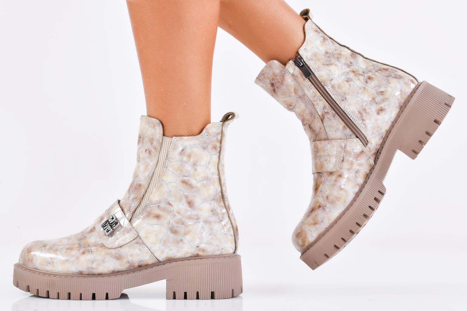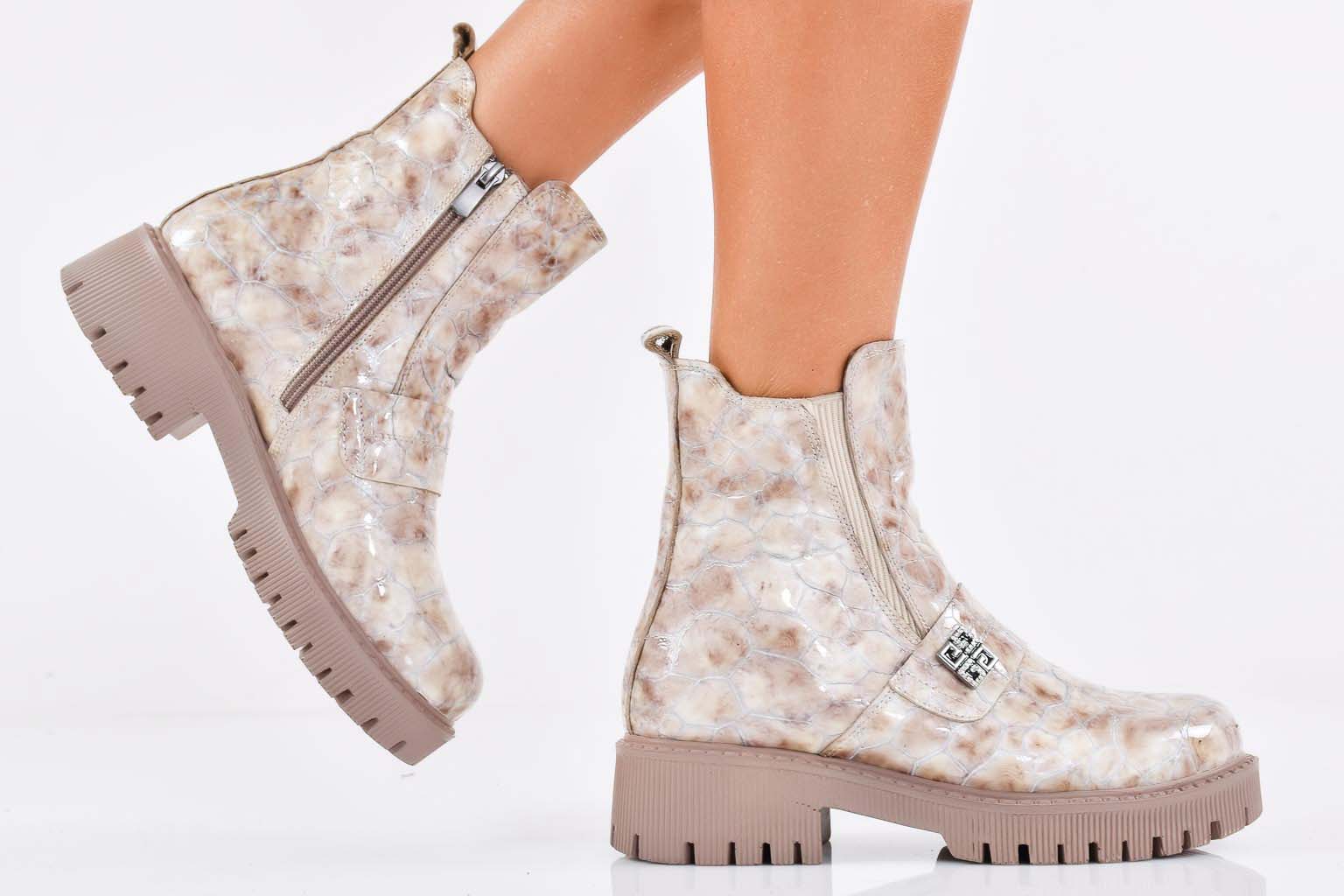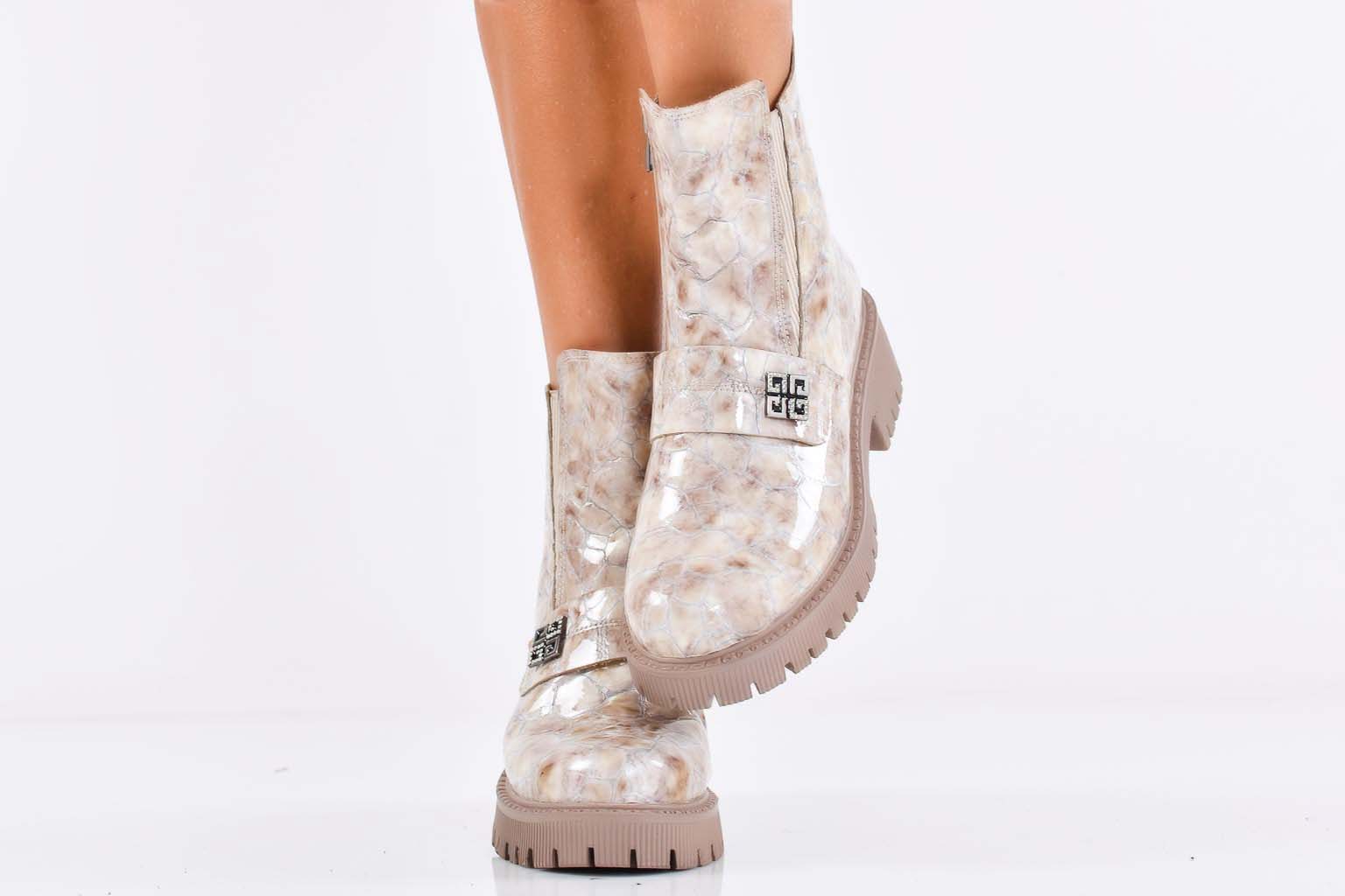 Дамски боти естествена  кожа бежови EOBUVKIBG