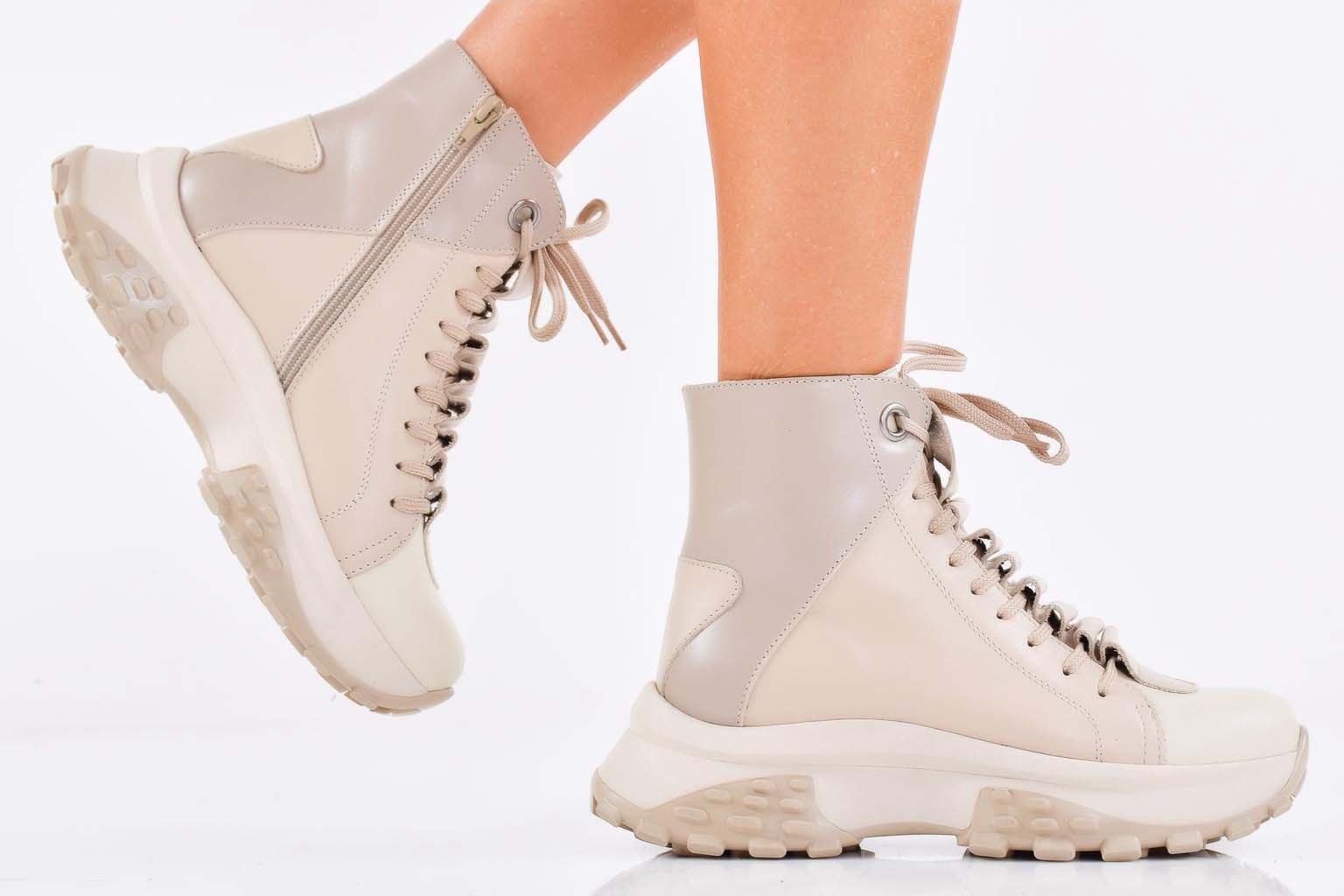 Дамски боти естествена кожа бежови EOBUVKIBG #502-7355