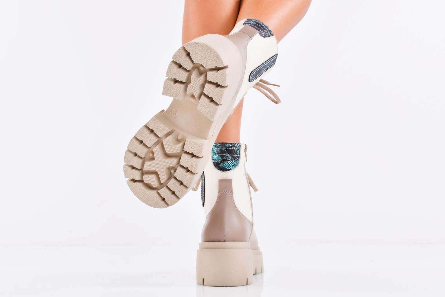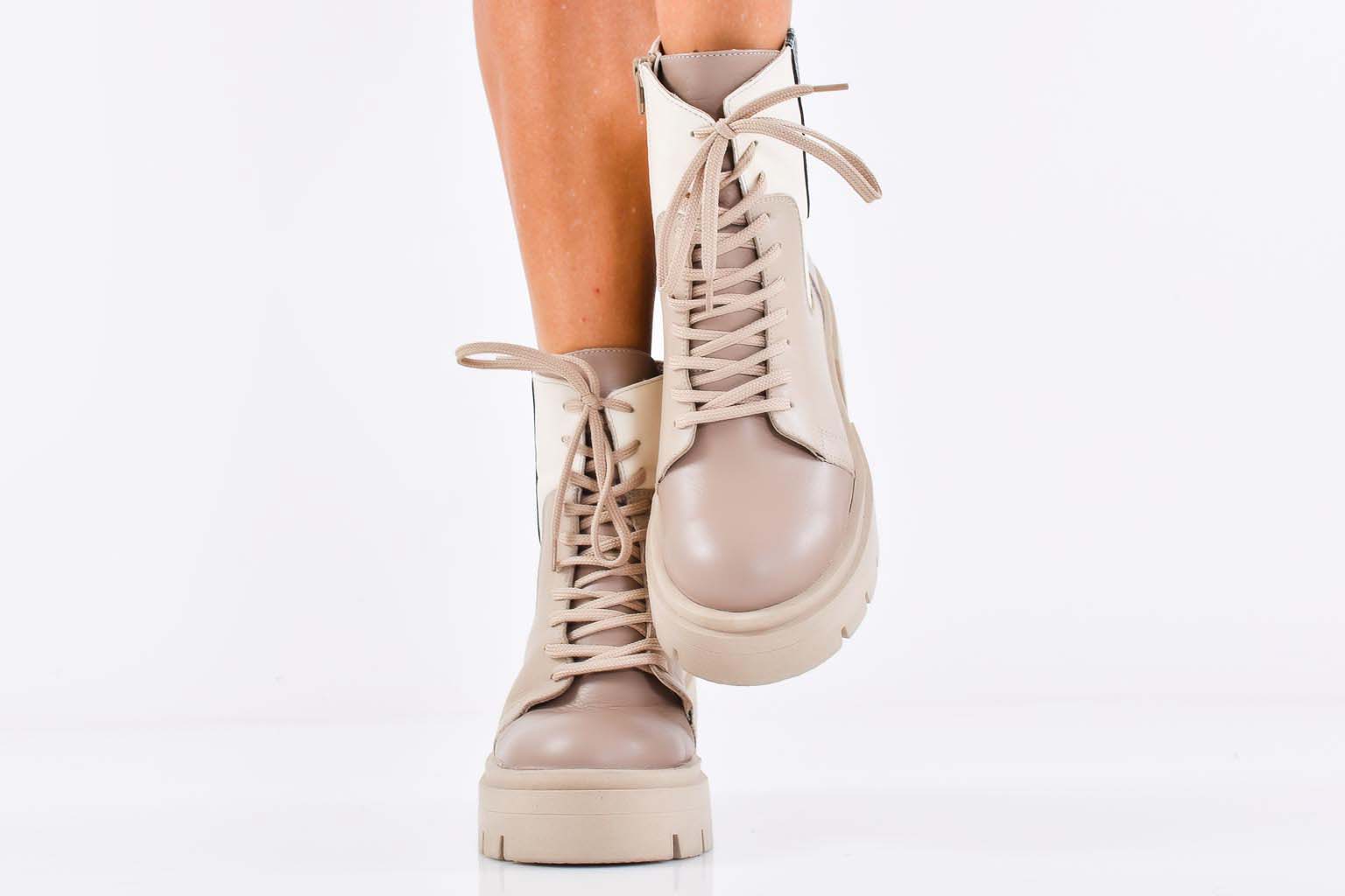 Дамски боти естествена кожа бежови EOBUVKIBG #502-7360