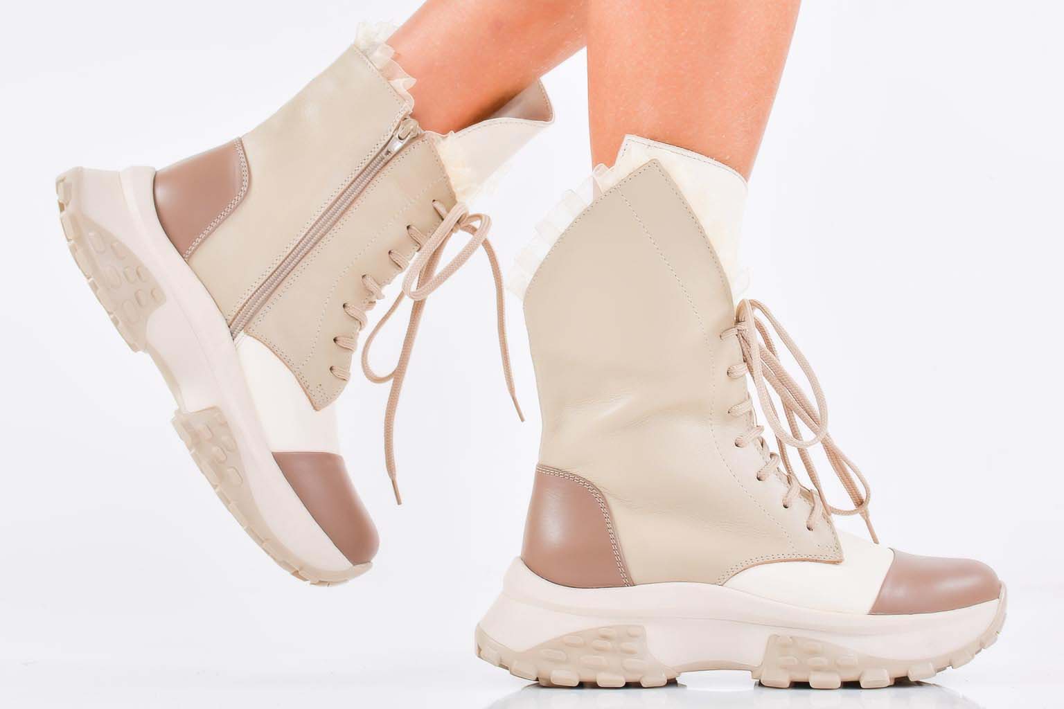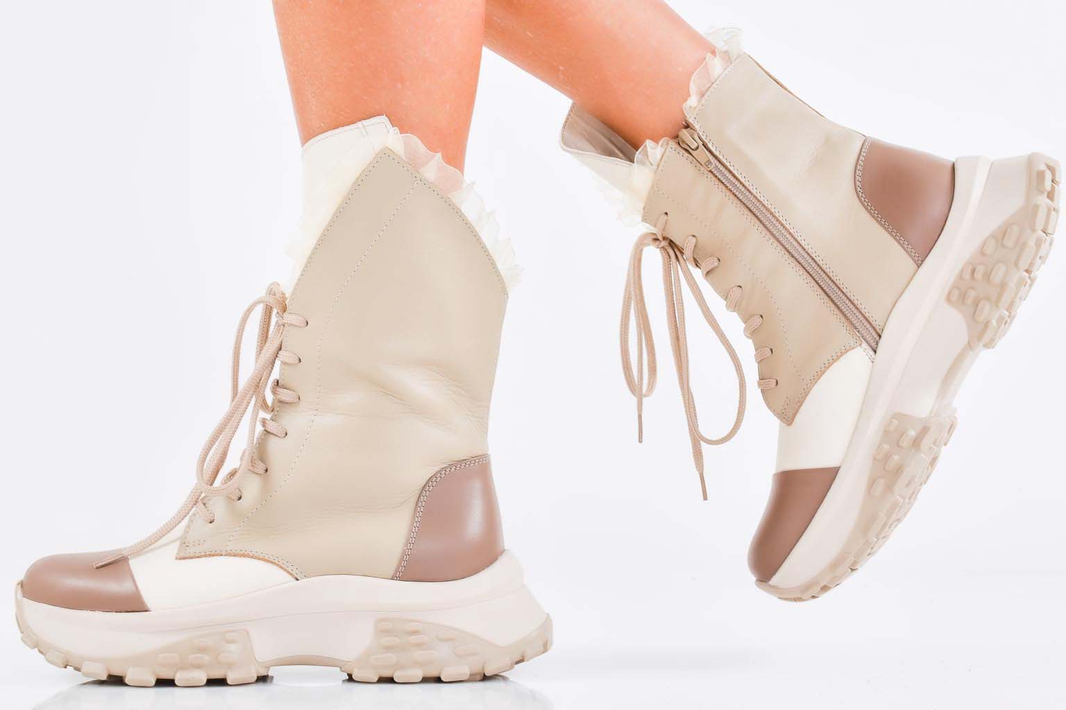 Дамски боти естествена кожа бежови EOBUVKIBG #502-7458