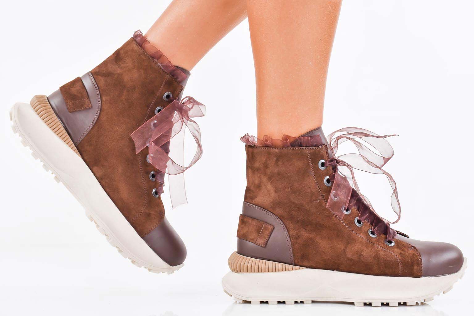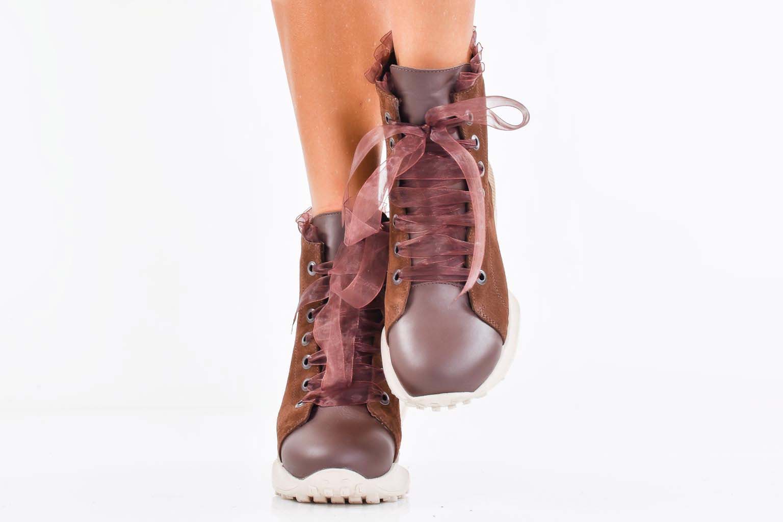 Дамски боти естествена кожа кафяви EOBUVKIBG #502-7313