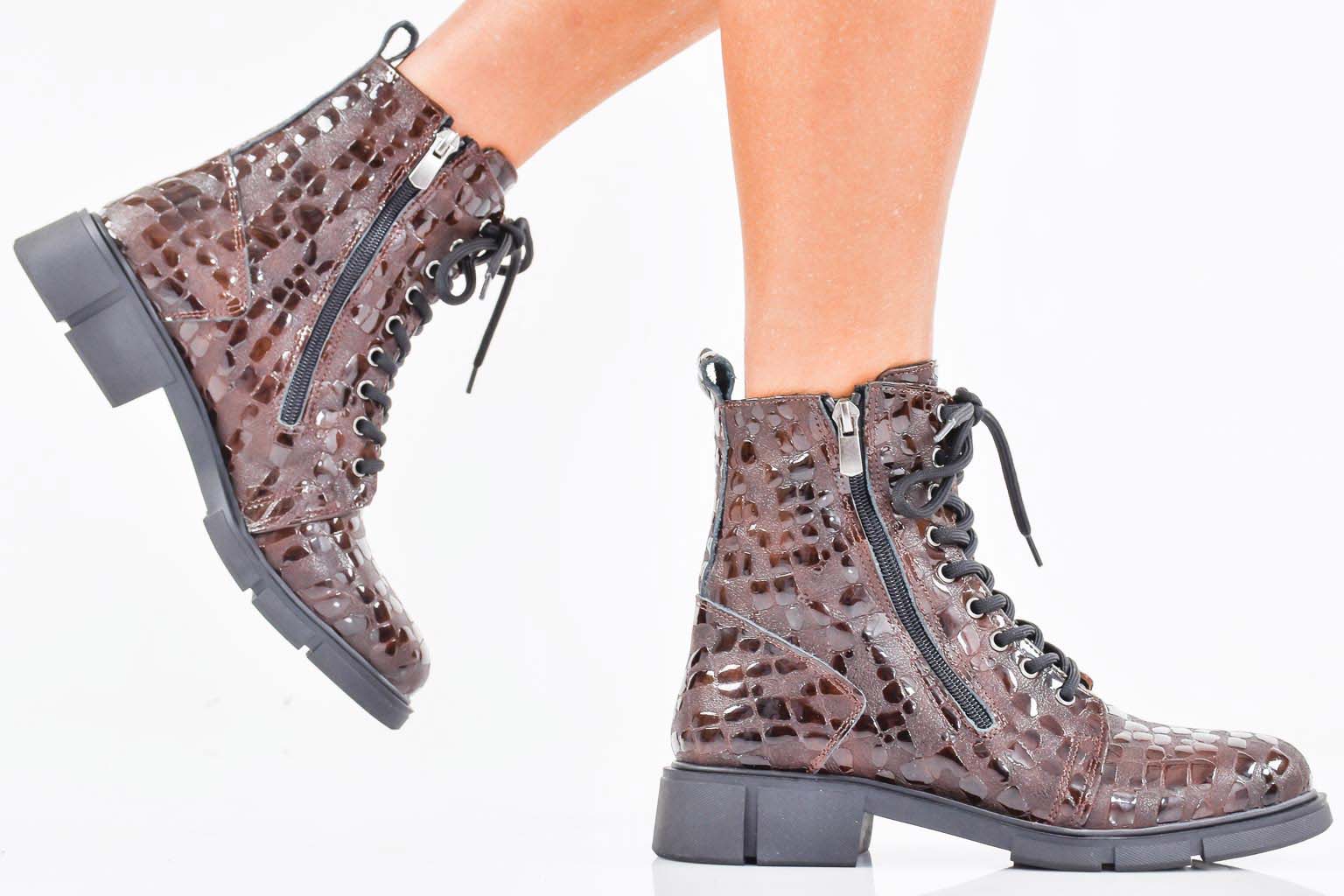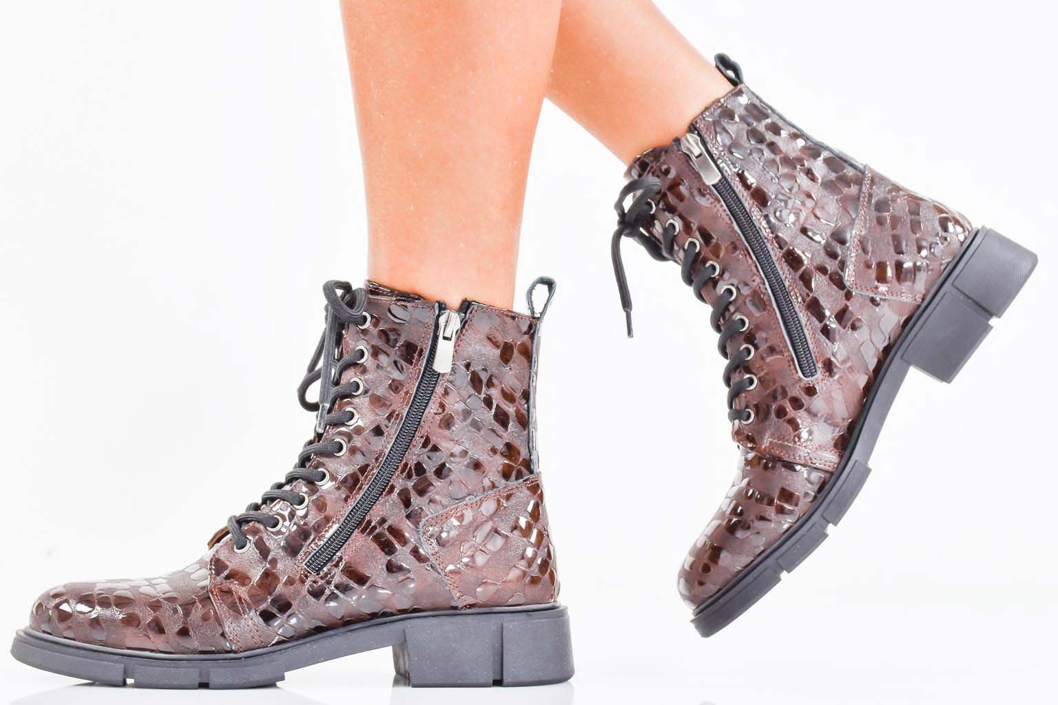 Дамски боти естествена кожа кафяви EOBUVKIBG #502-7483