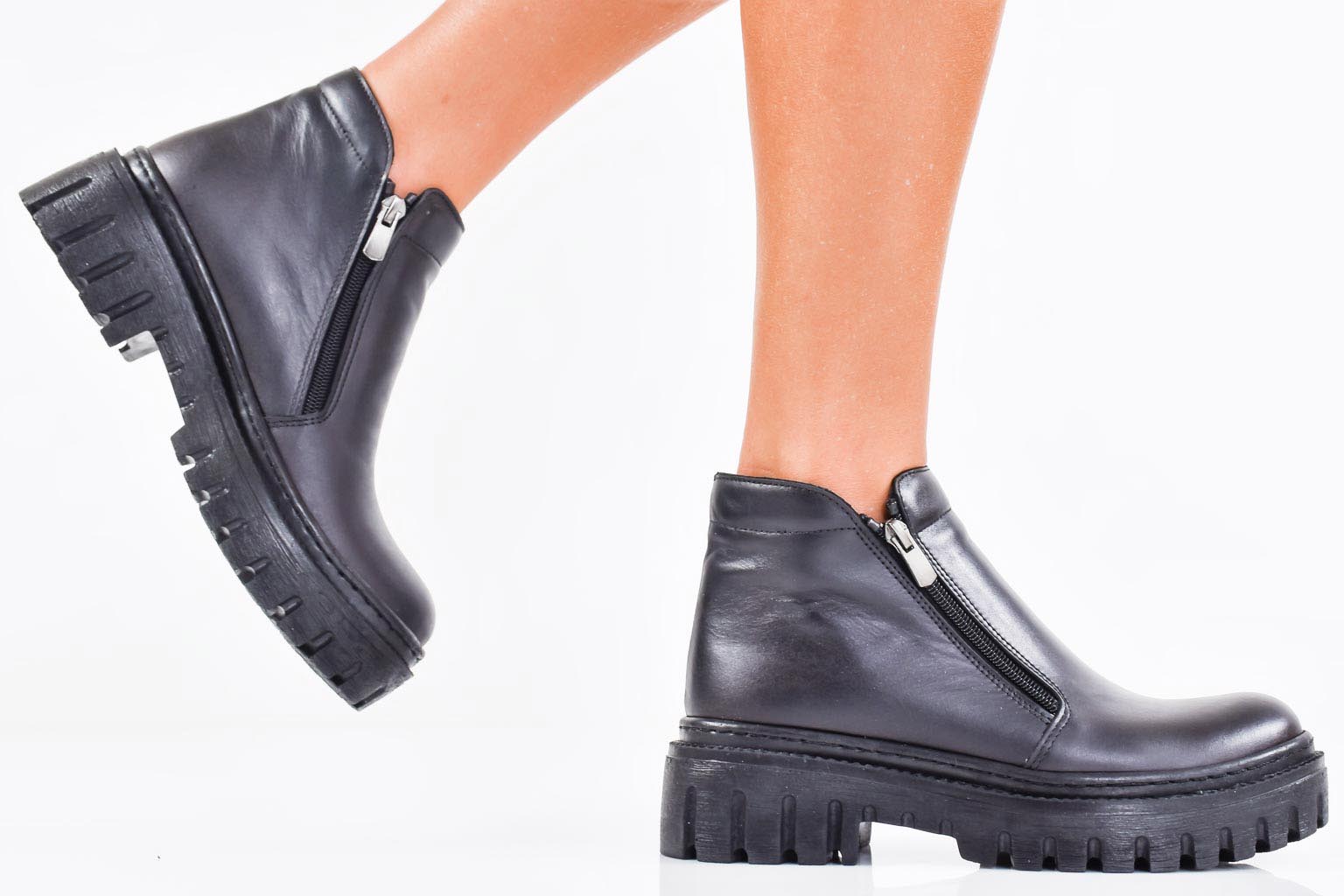 Дамски боти естествена кожа черни EOBUVKIBG #502-7091