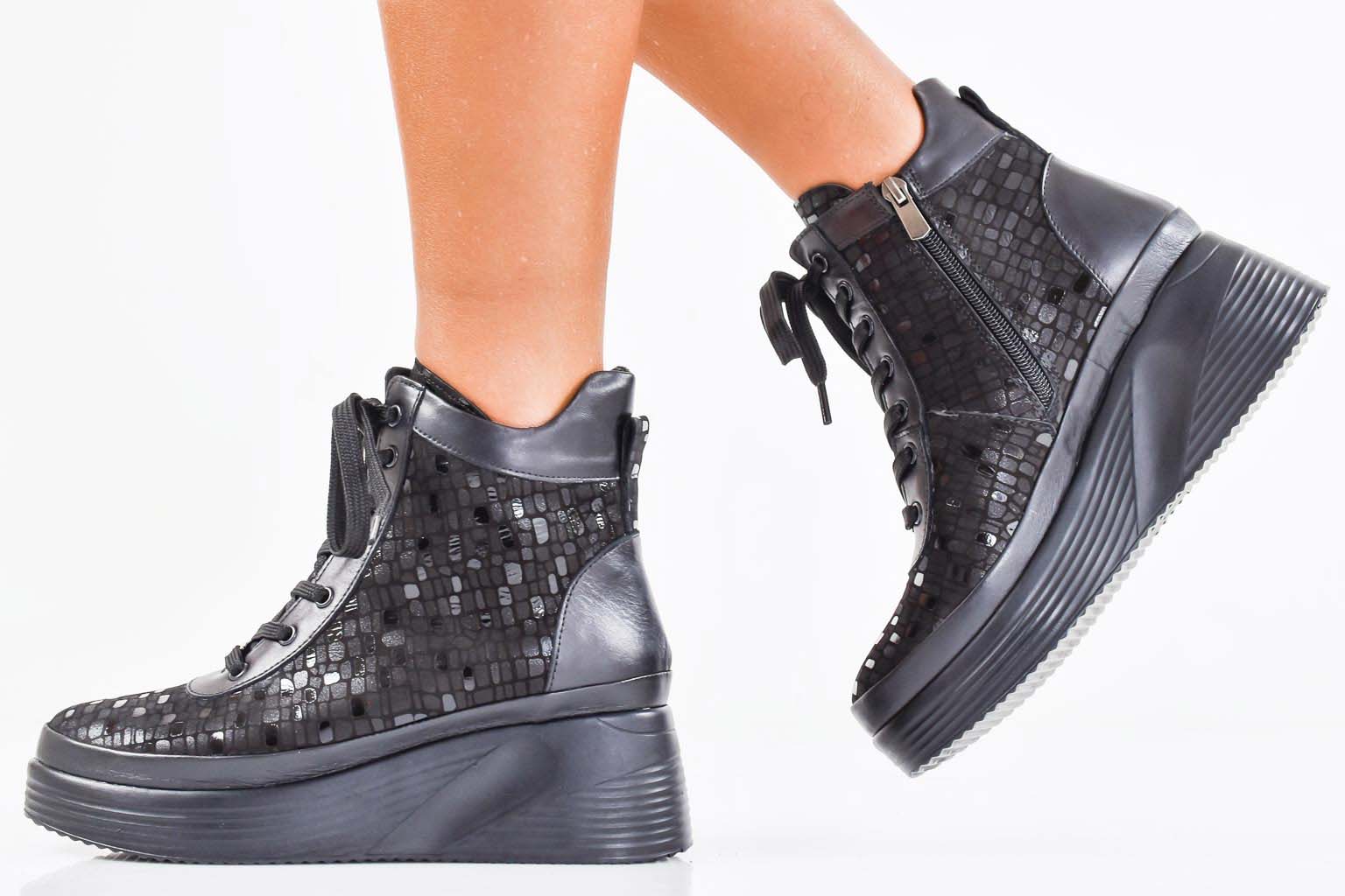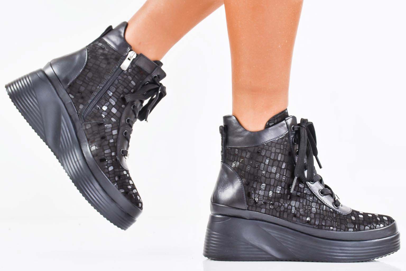 Дамски боти естествена кожа черни EOBUVKIBG #502-7299