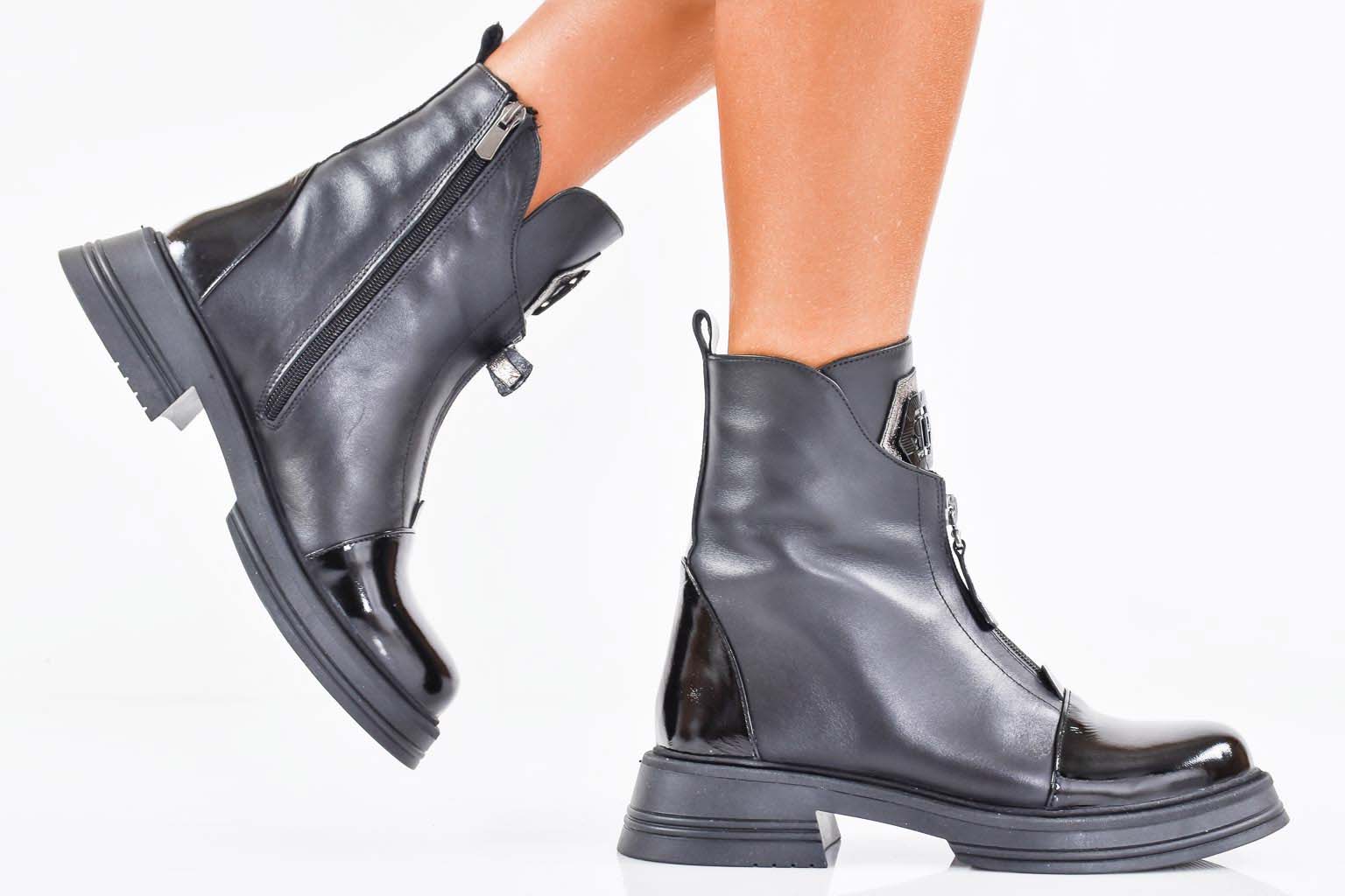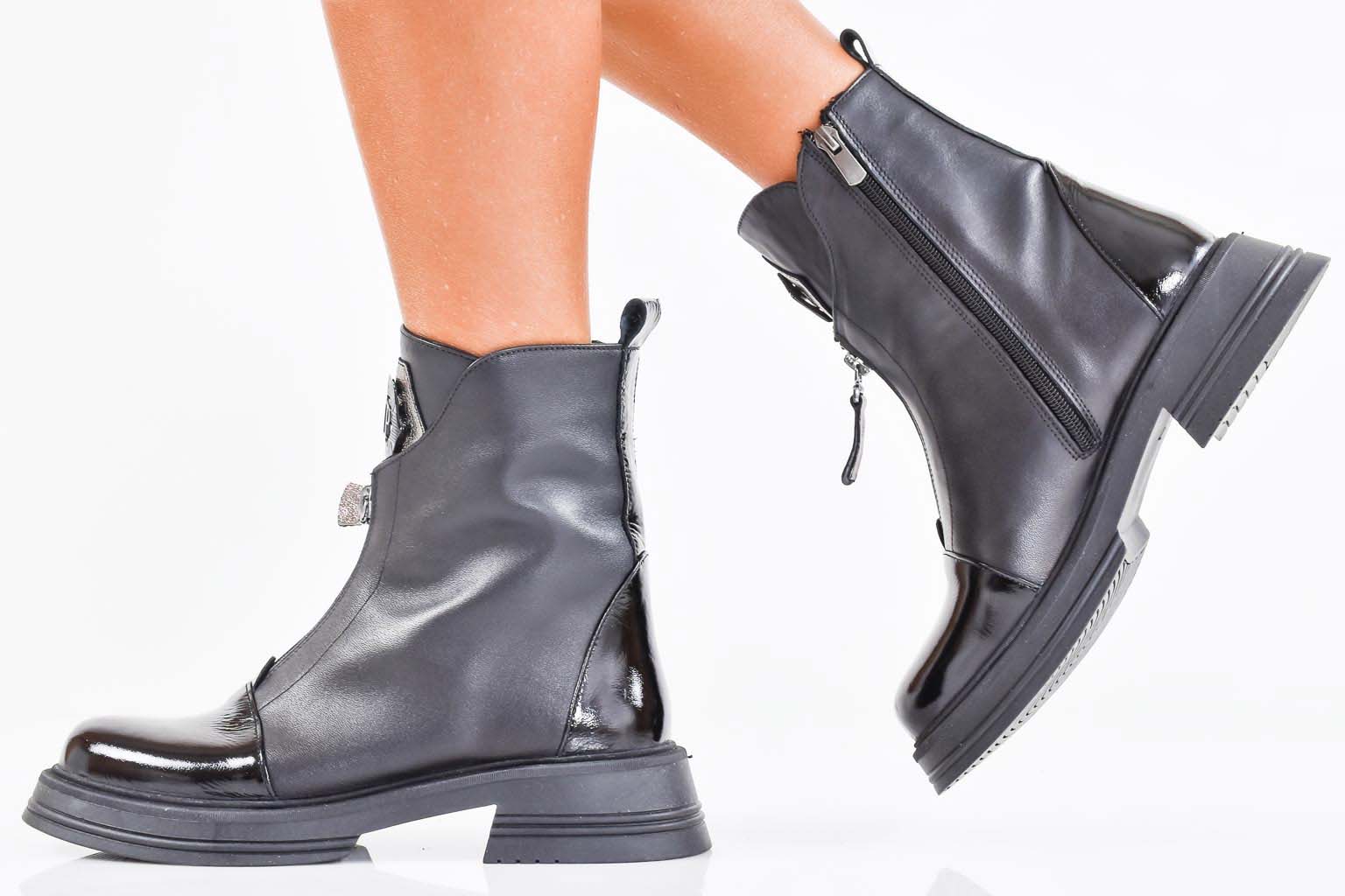 Дамски боти естествена  кожа черни EOBUVKIBG