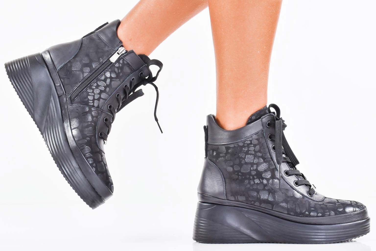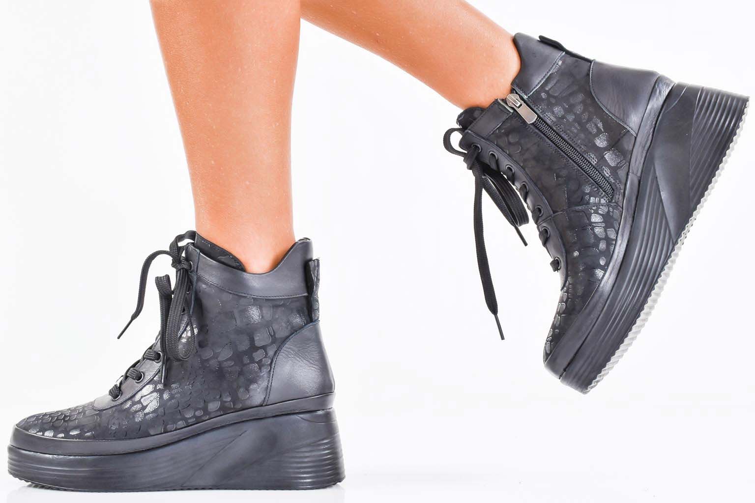 Дамски боти естествена кожа черни EOBUVKIBG #502-7243