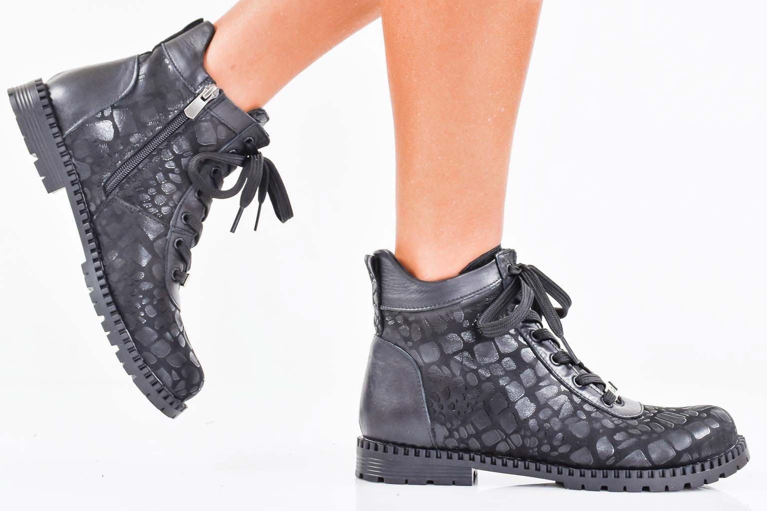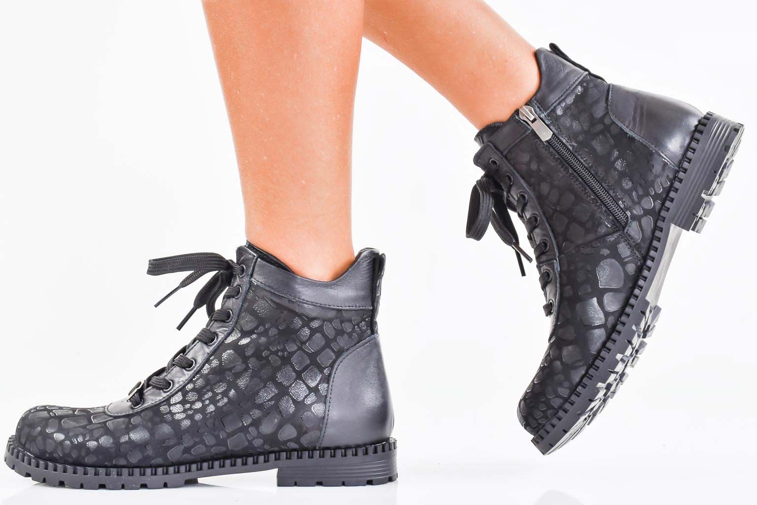 Дамски боти естествена кожа черни EOBUVKIBG #502-7345