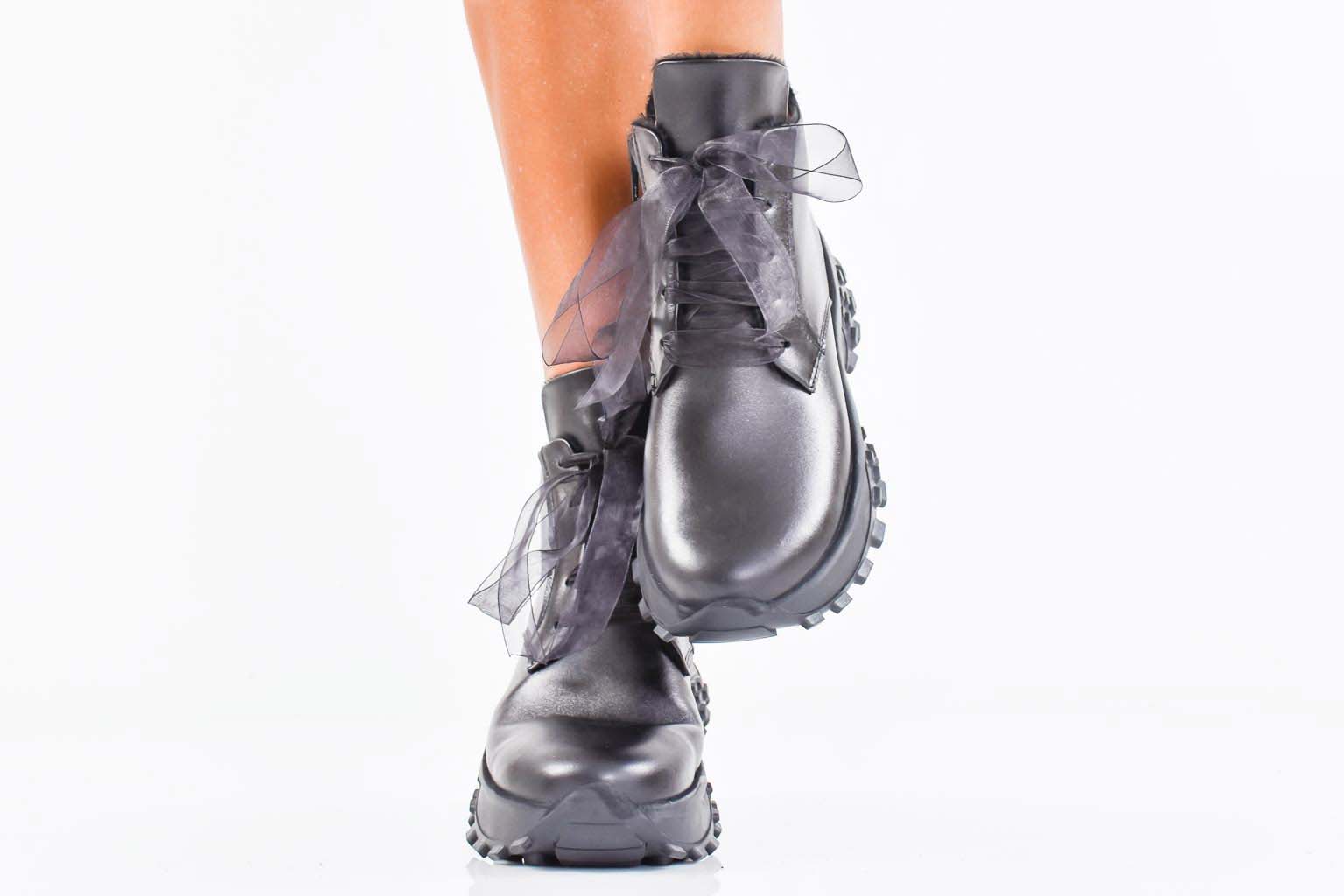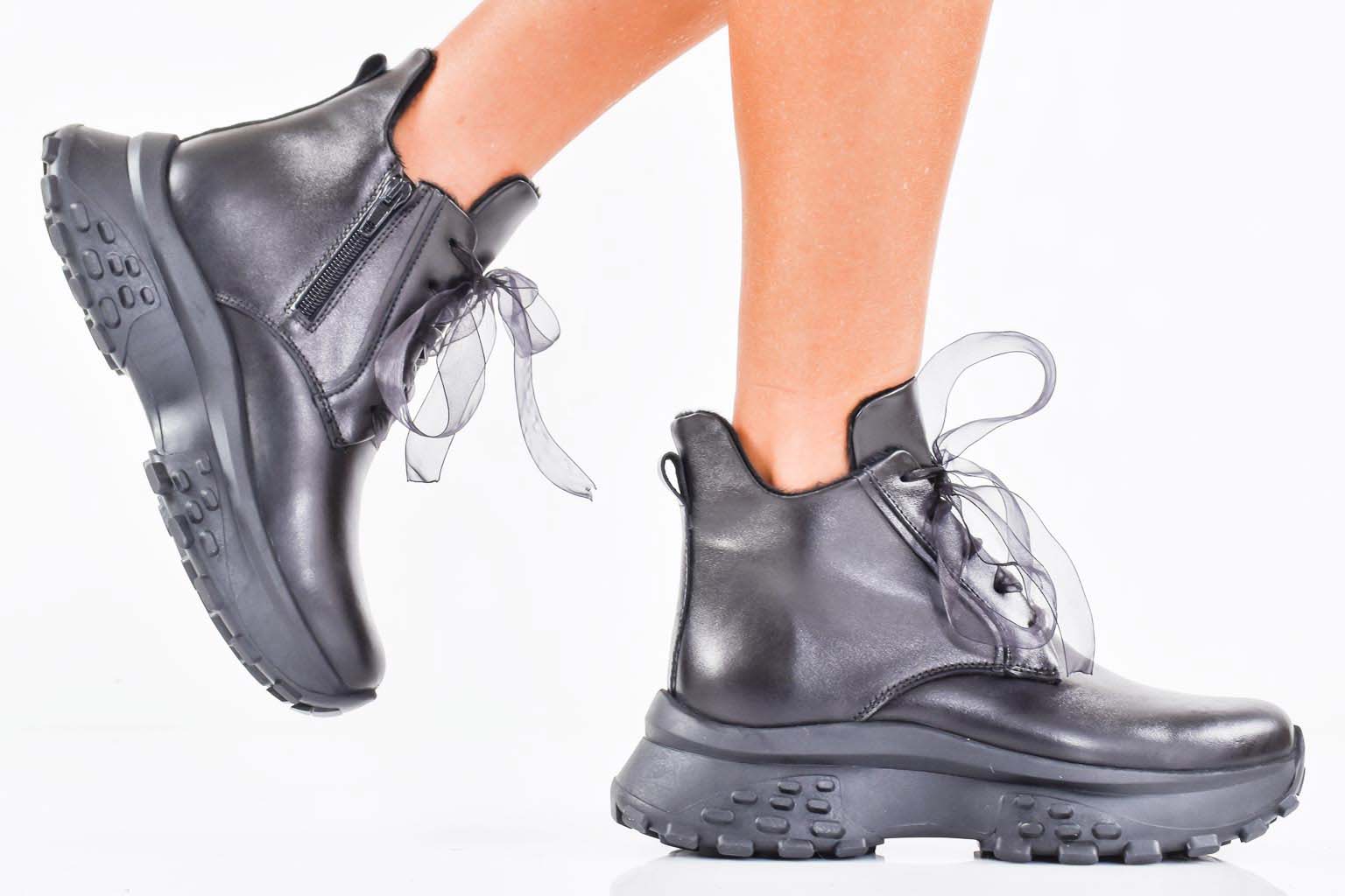 Дамски боти естествена кожа черни EOBUVKIBG #502-7357
