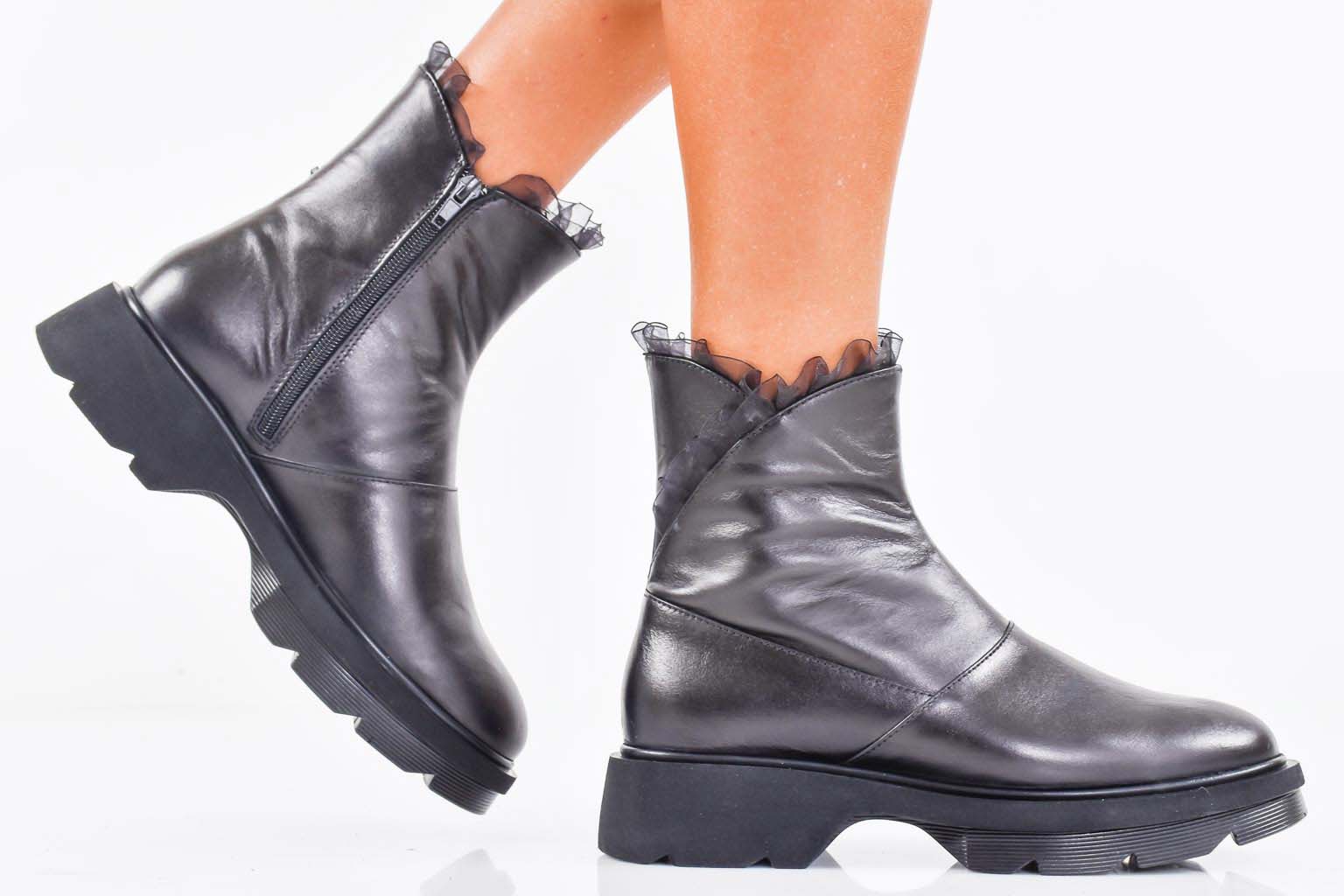 Дамски боти естествена кожа черни EOBUVKIBG #502-7362