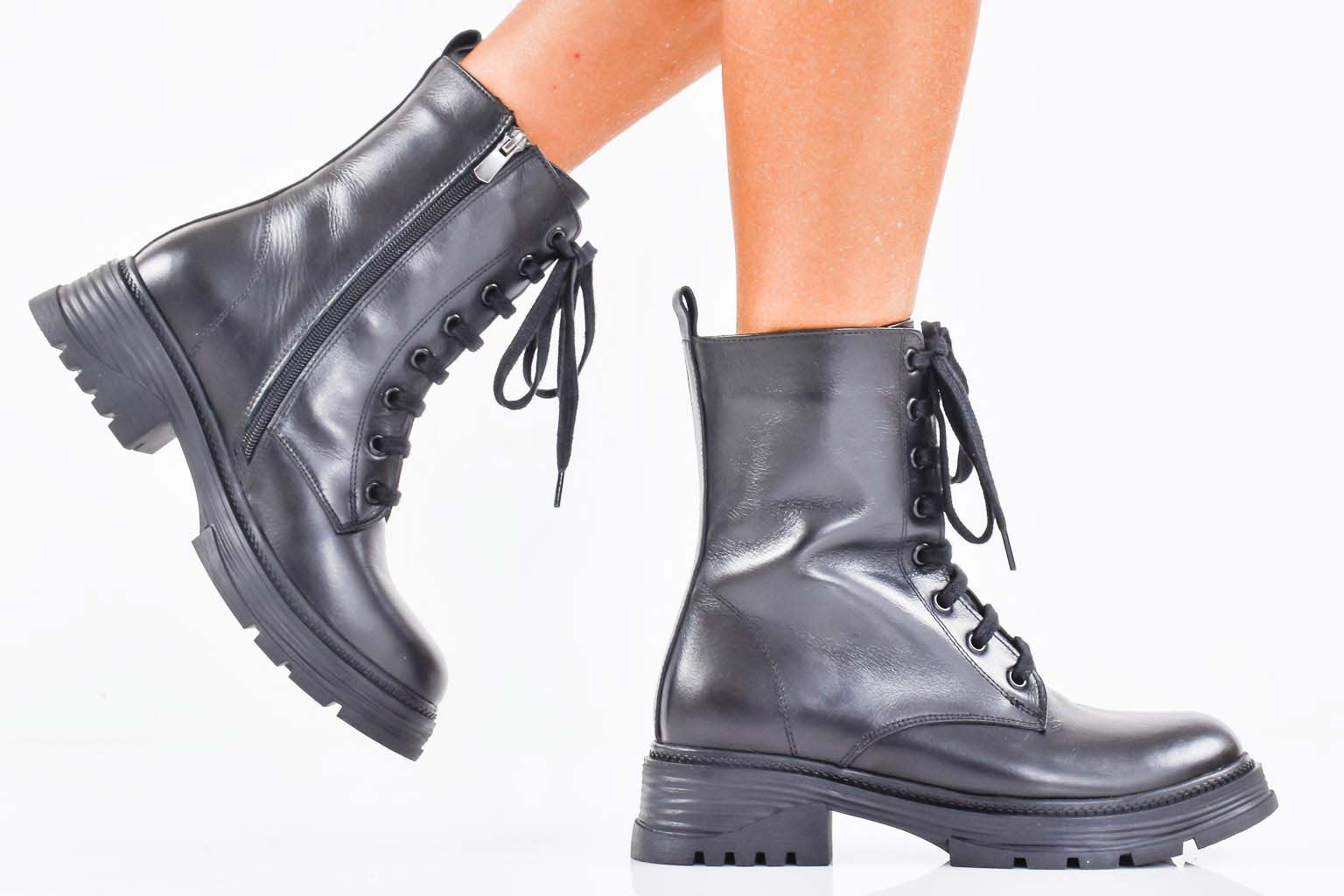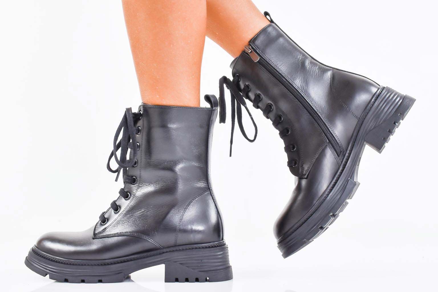 Дамски боти естествена кожа черни EOBUVKIBG #502-7374