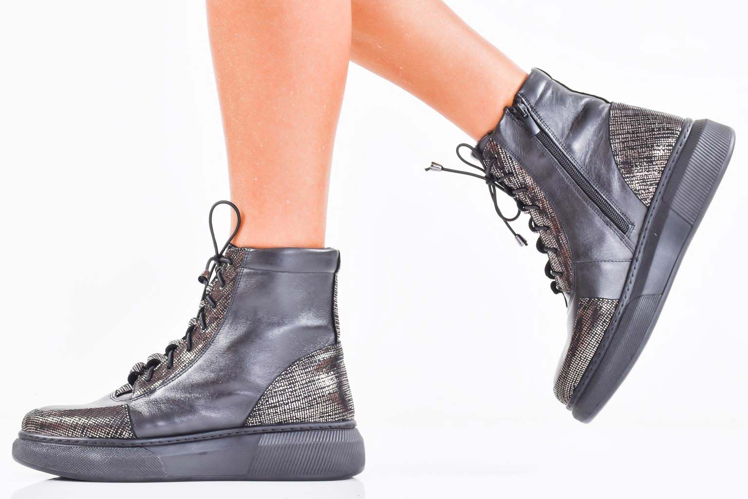 Дамски боти естествена кожа черни EOBUVKIBG #502-7409