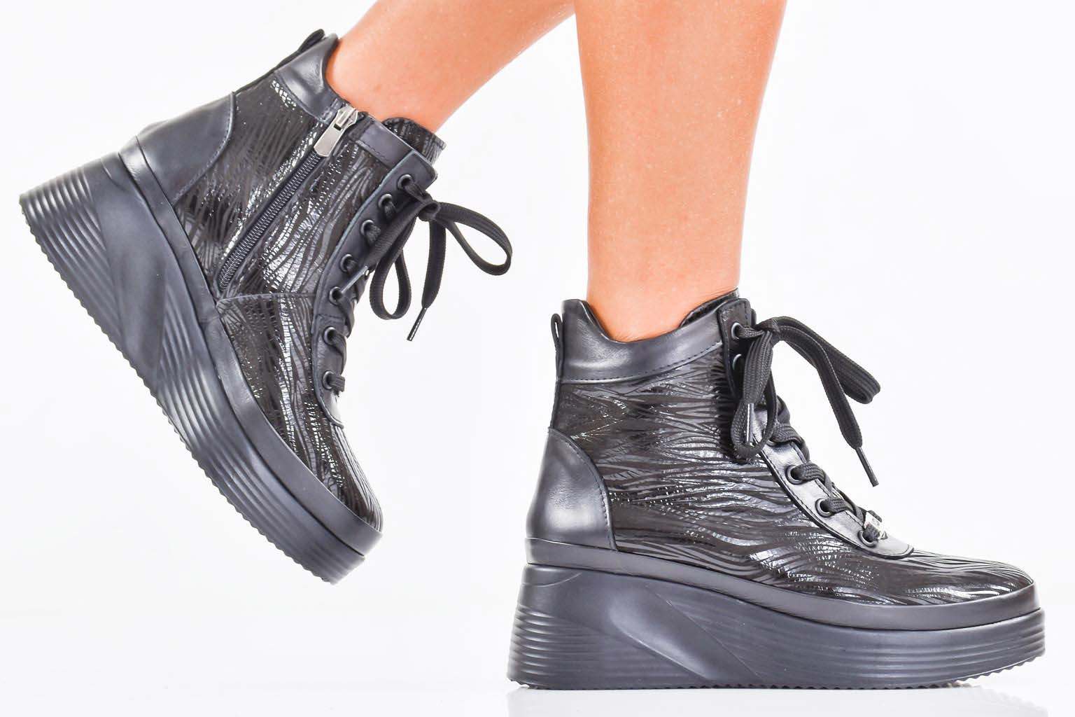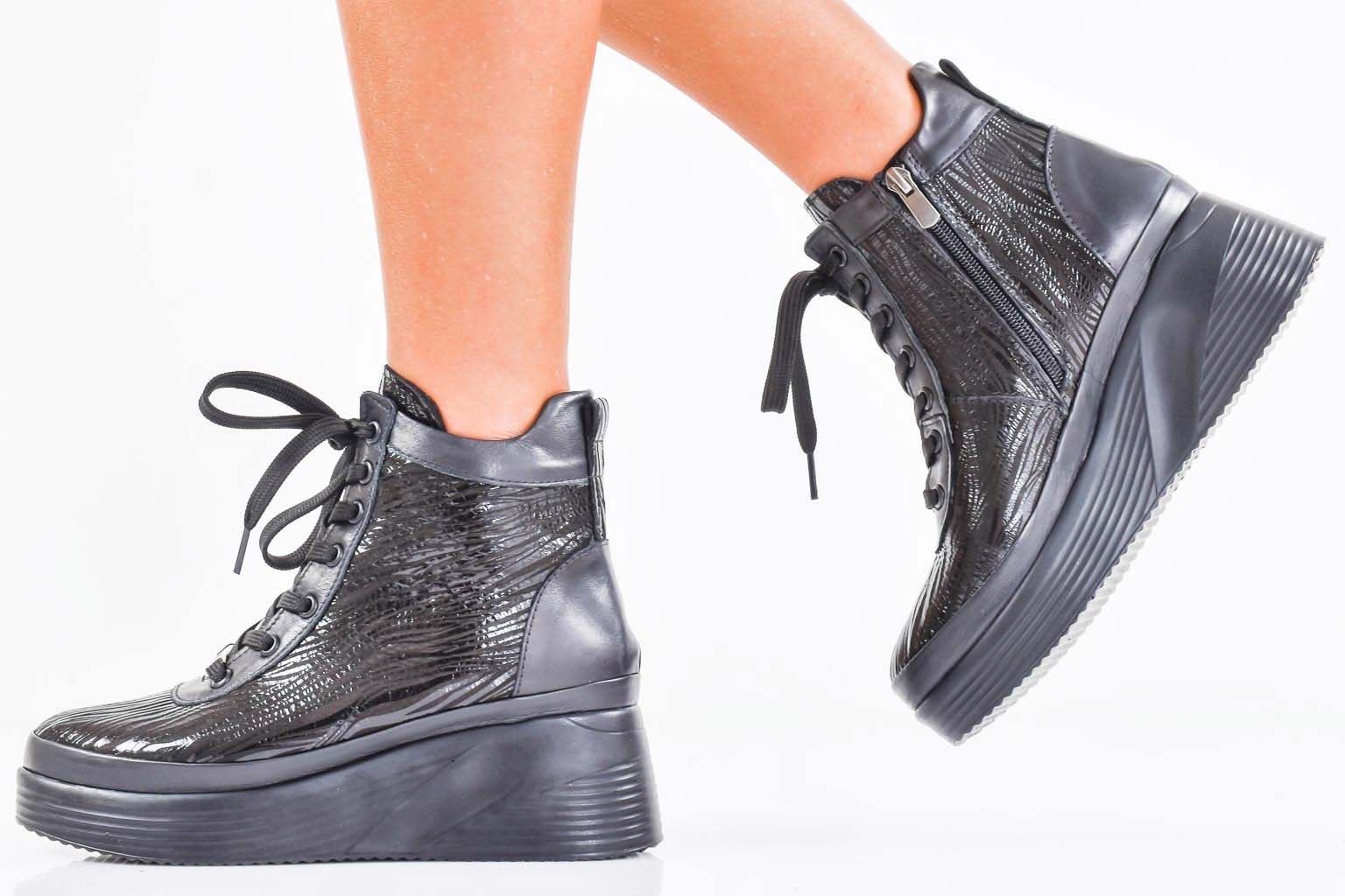 Дамски боти естествена кожа черни EOBUVKIBG #502-7415