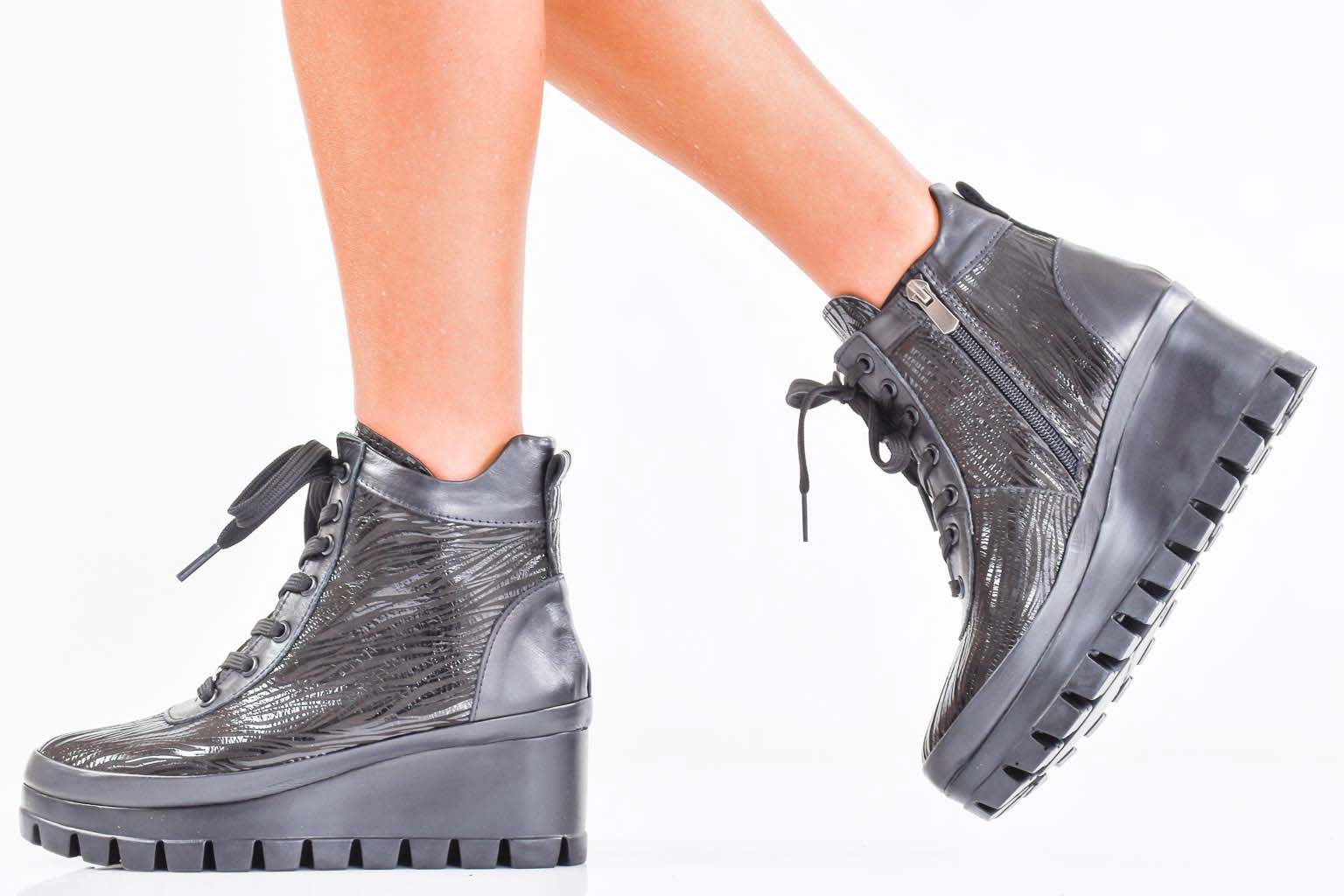 Дамски боти естествена кожа черни EOBUVKIBG #502-7418