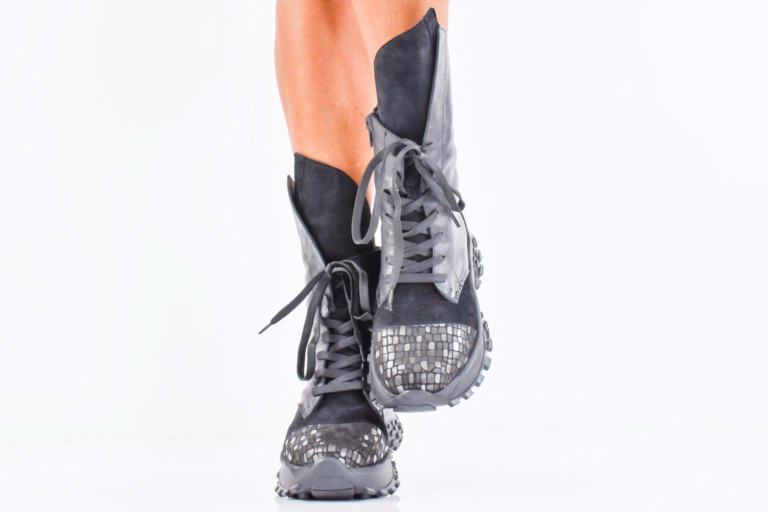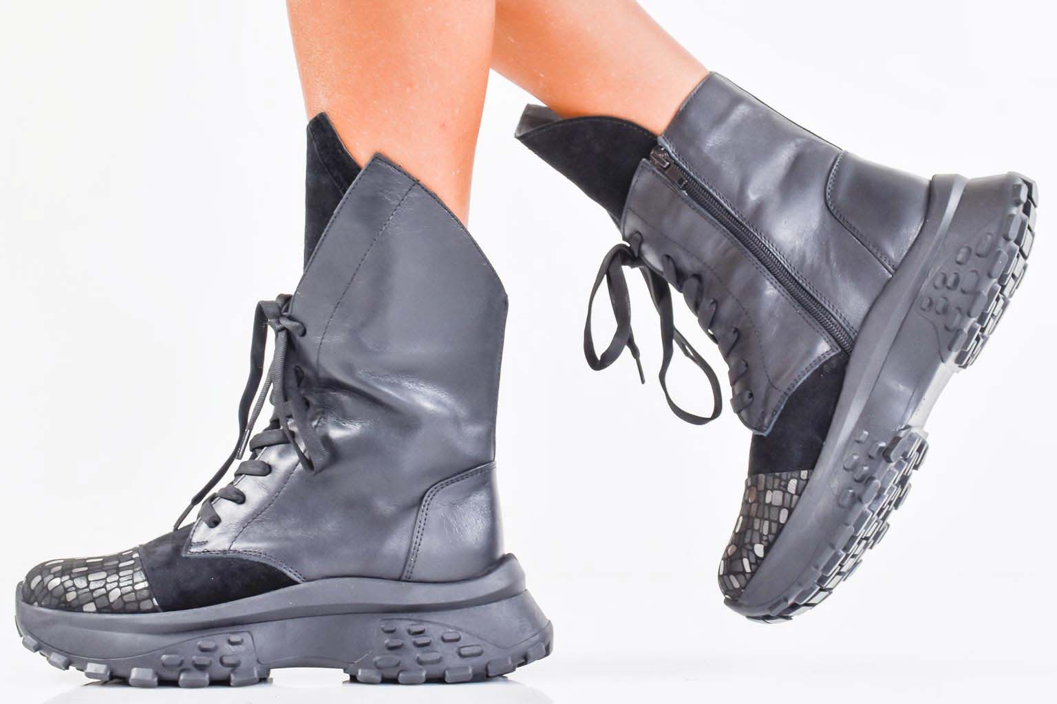 Дамски боти естествена кожа черни EOBUVKIBG #502-7437