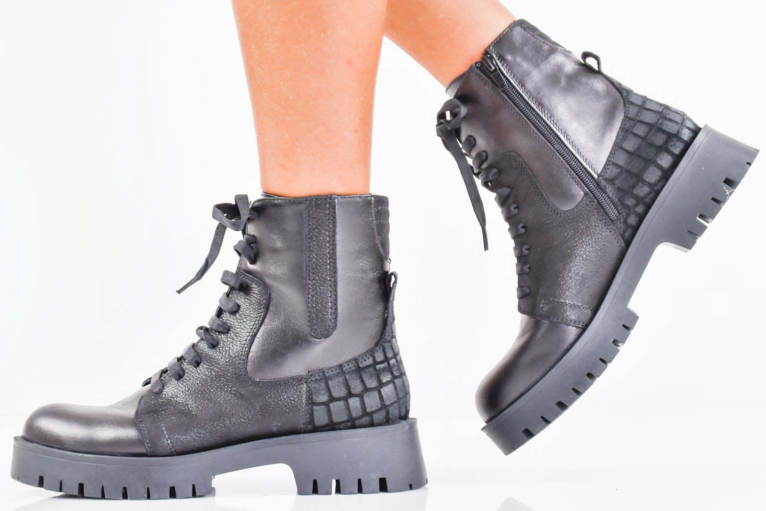 Дамски боти естествена кожа черни EOBUVKIBG #502-7430