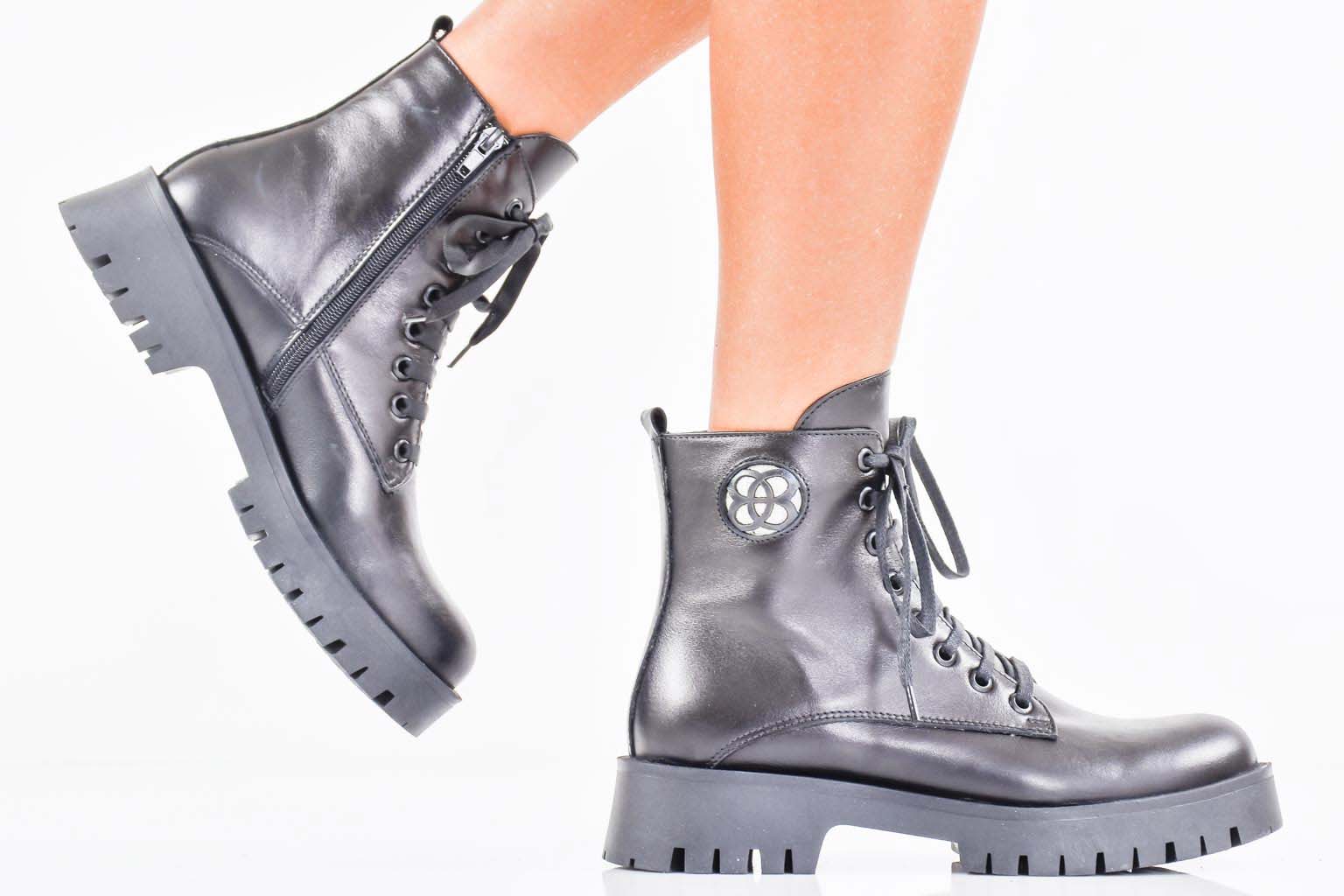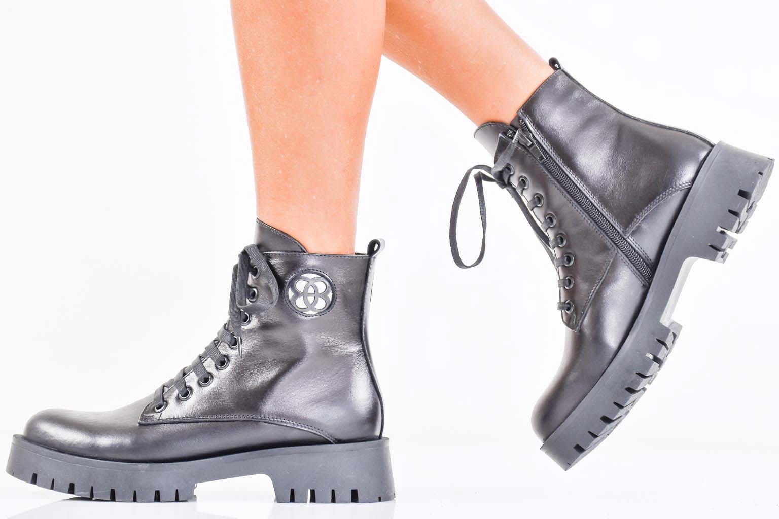 Дамски боти естествена кожа черни EOBUVKIBG