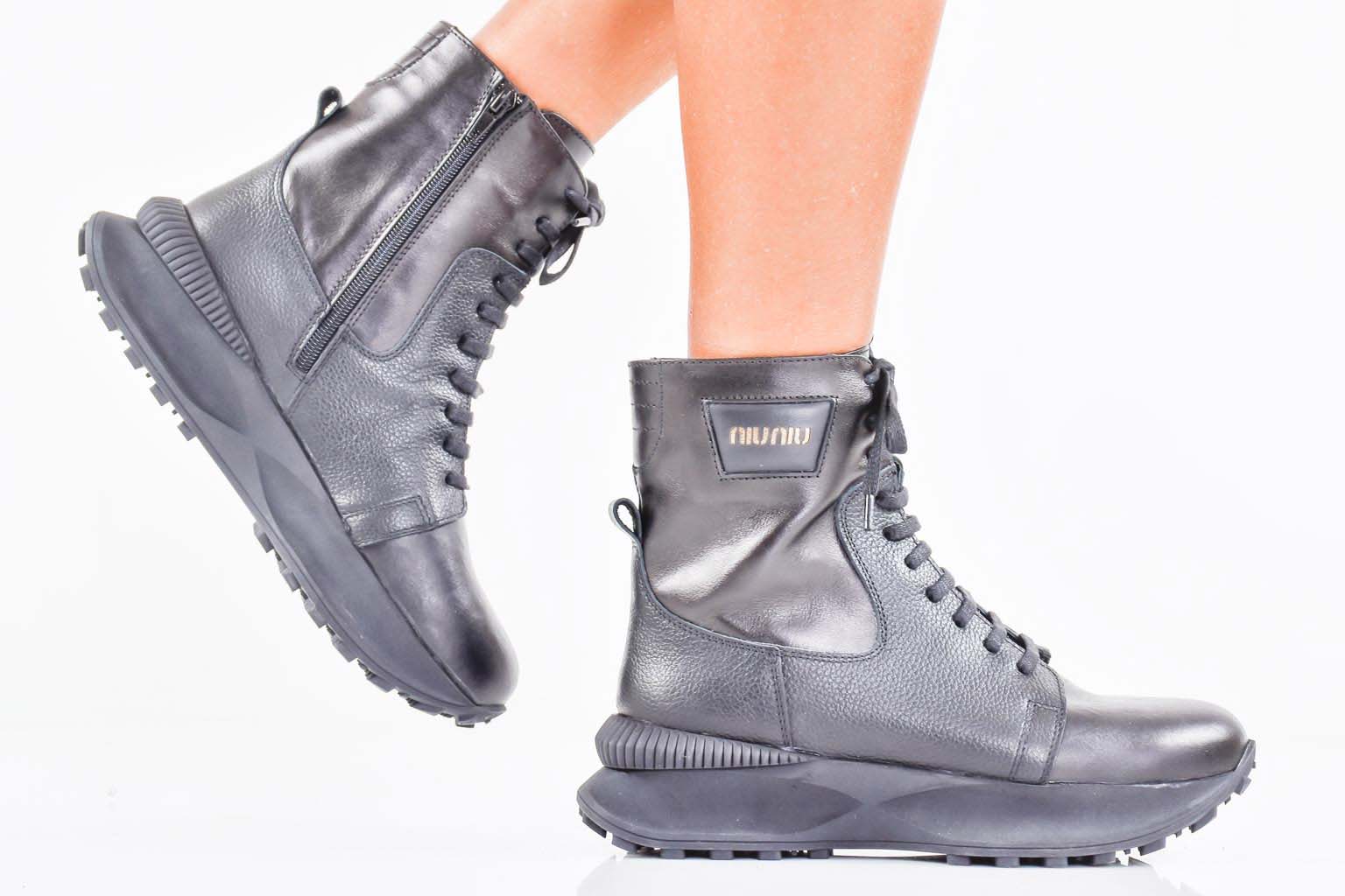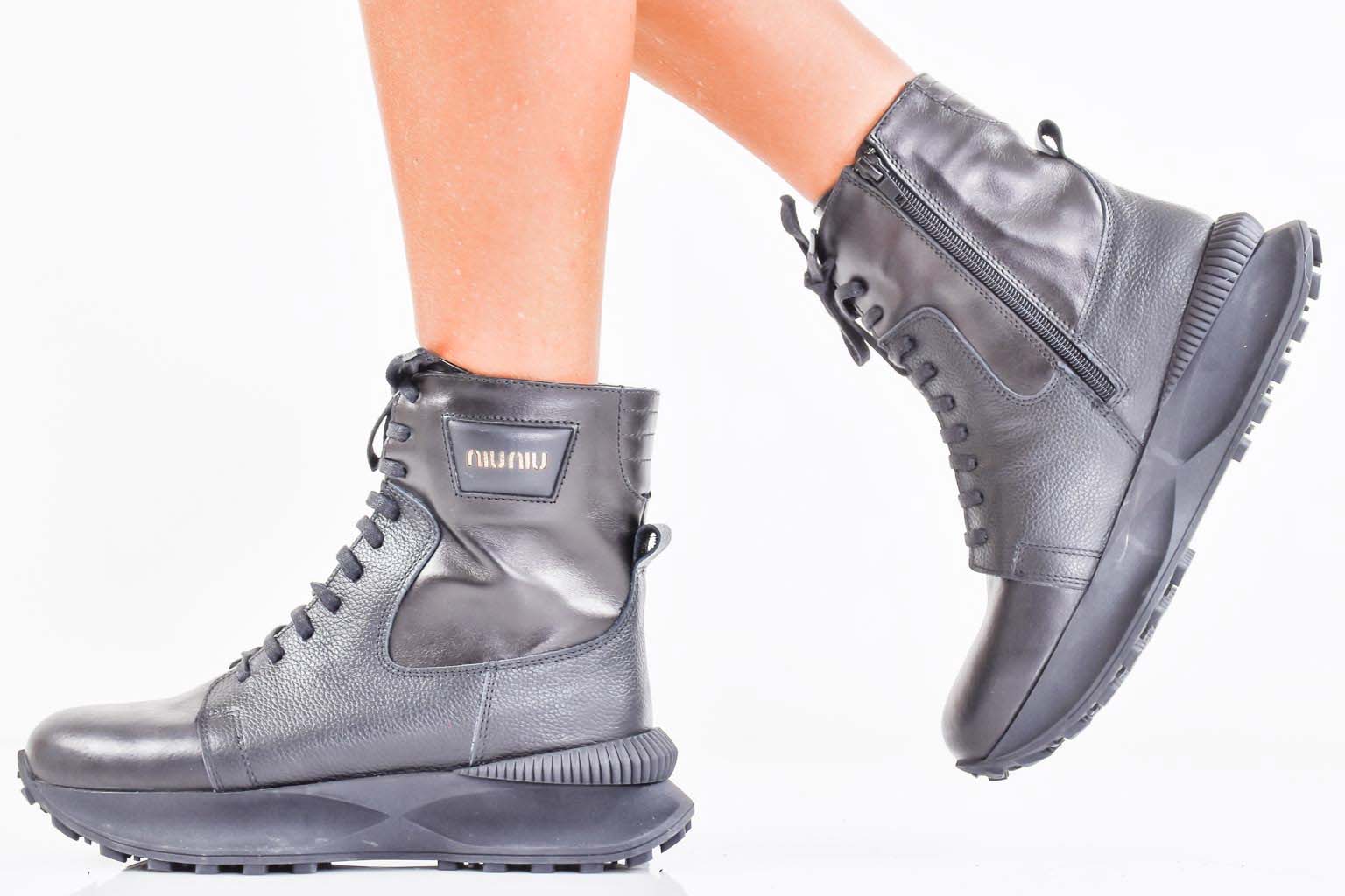 Дамски боти естествена кожа черни EOBUVKIBG #502-7465