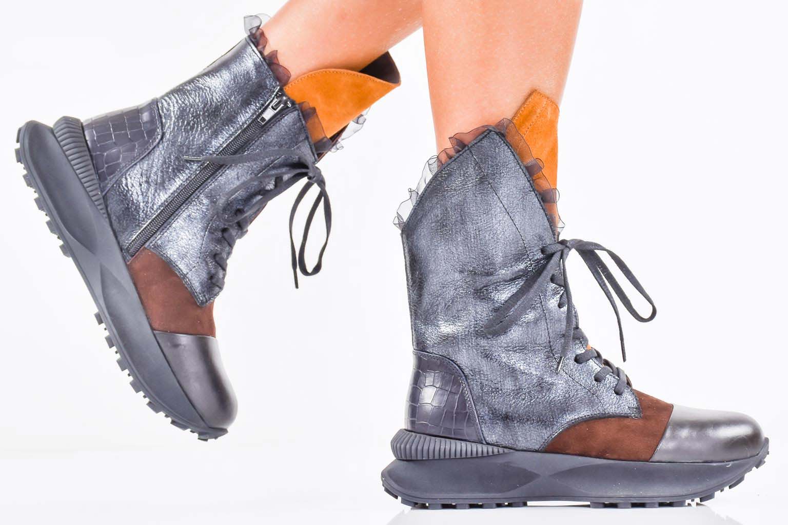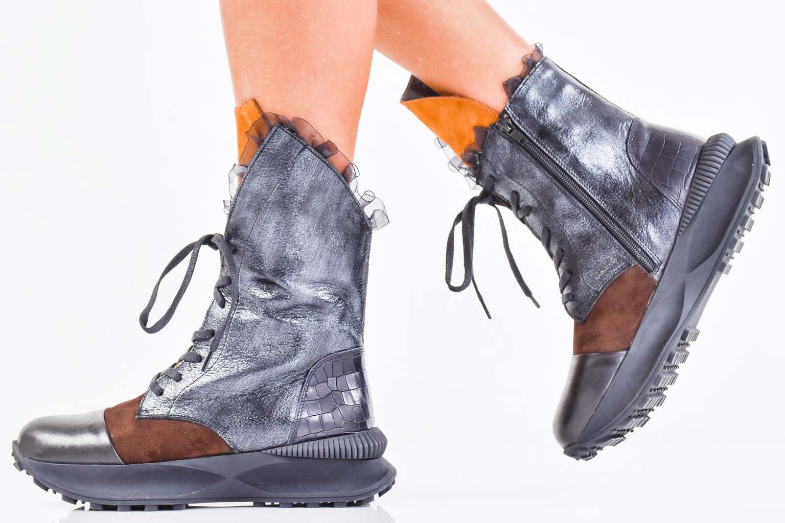 Дамски боти естествена кожа черни EOBUVKIBG #502-7466