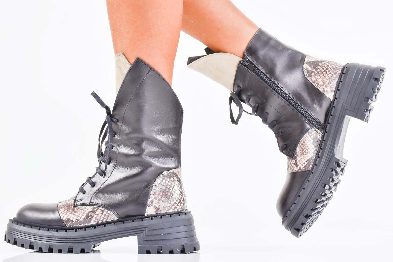 Дамски боти естествена кожа черни EOBUVKIBG #502-7467