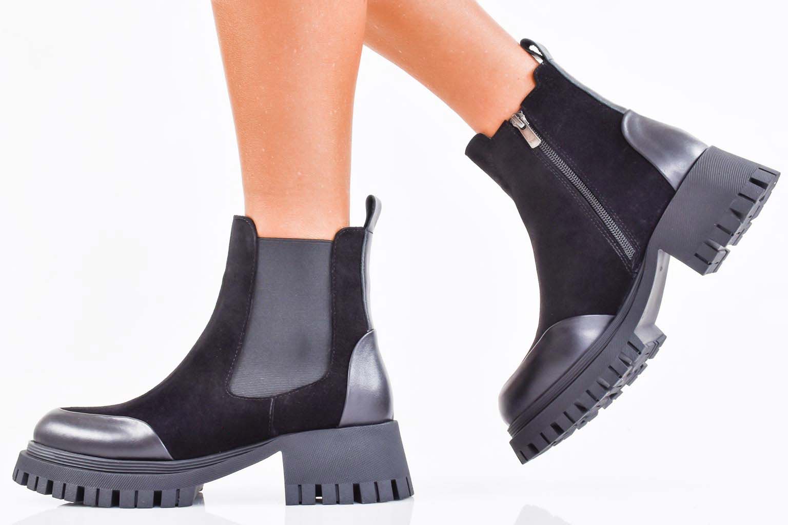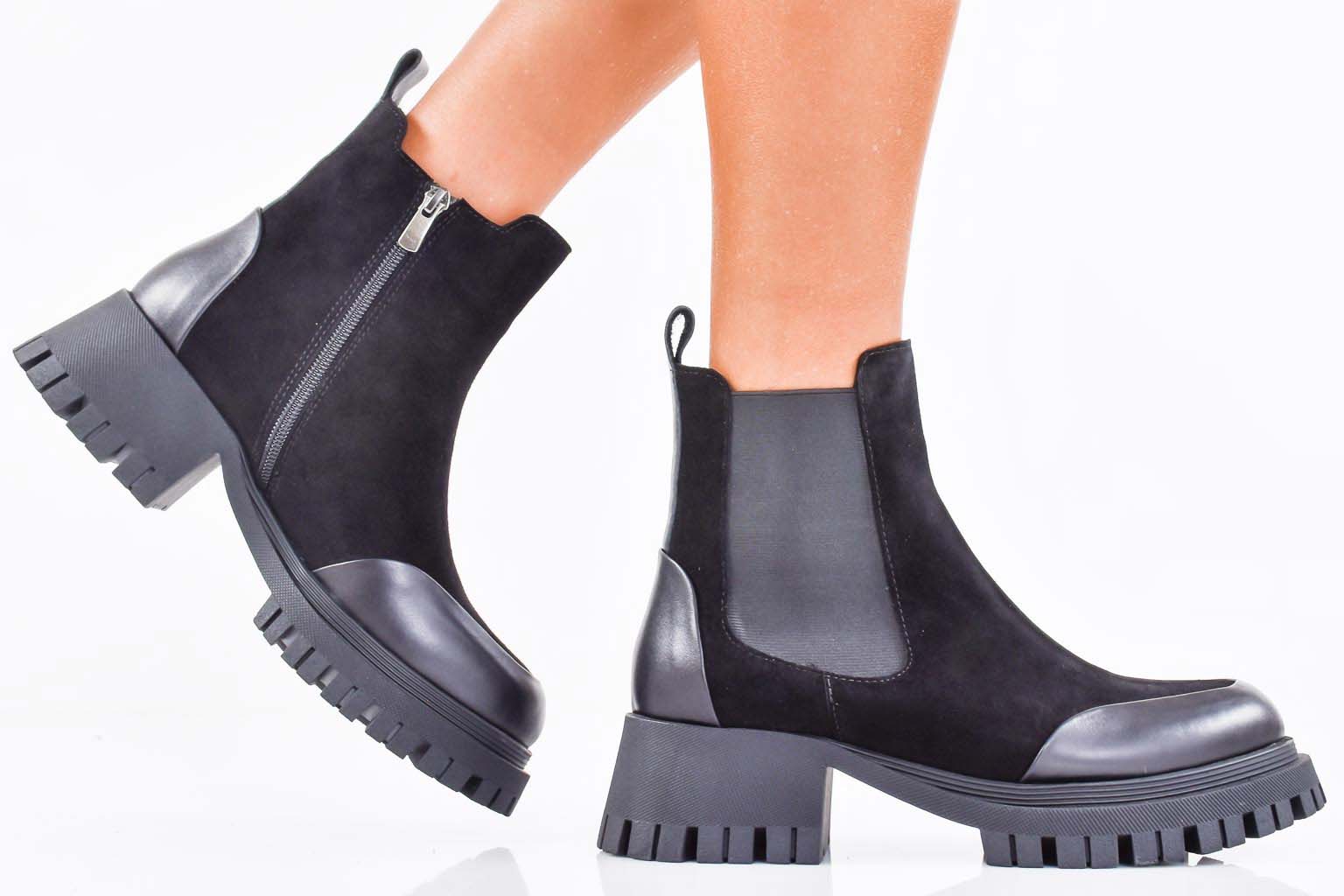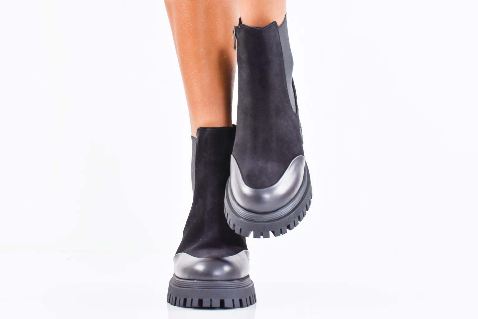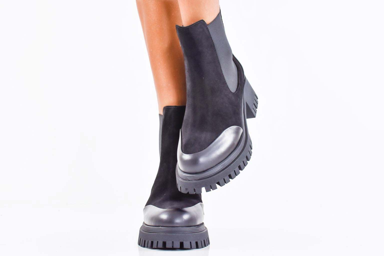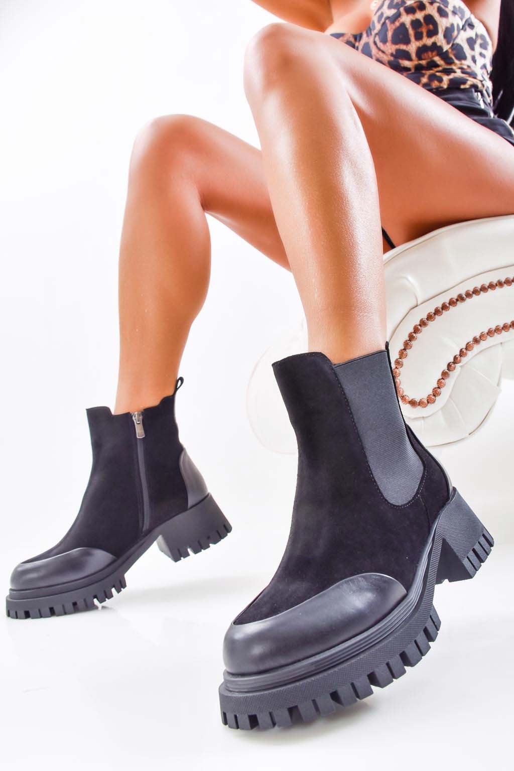 Дамски боти естествен велур черни EOBUVKIBG #502-7289