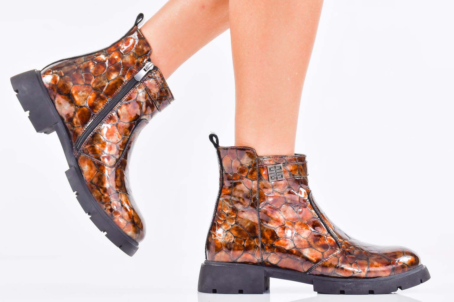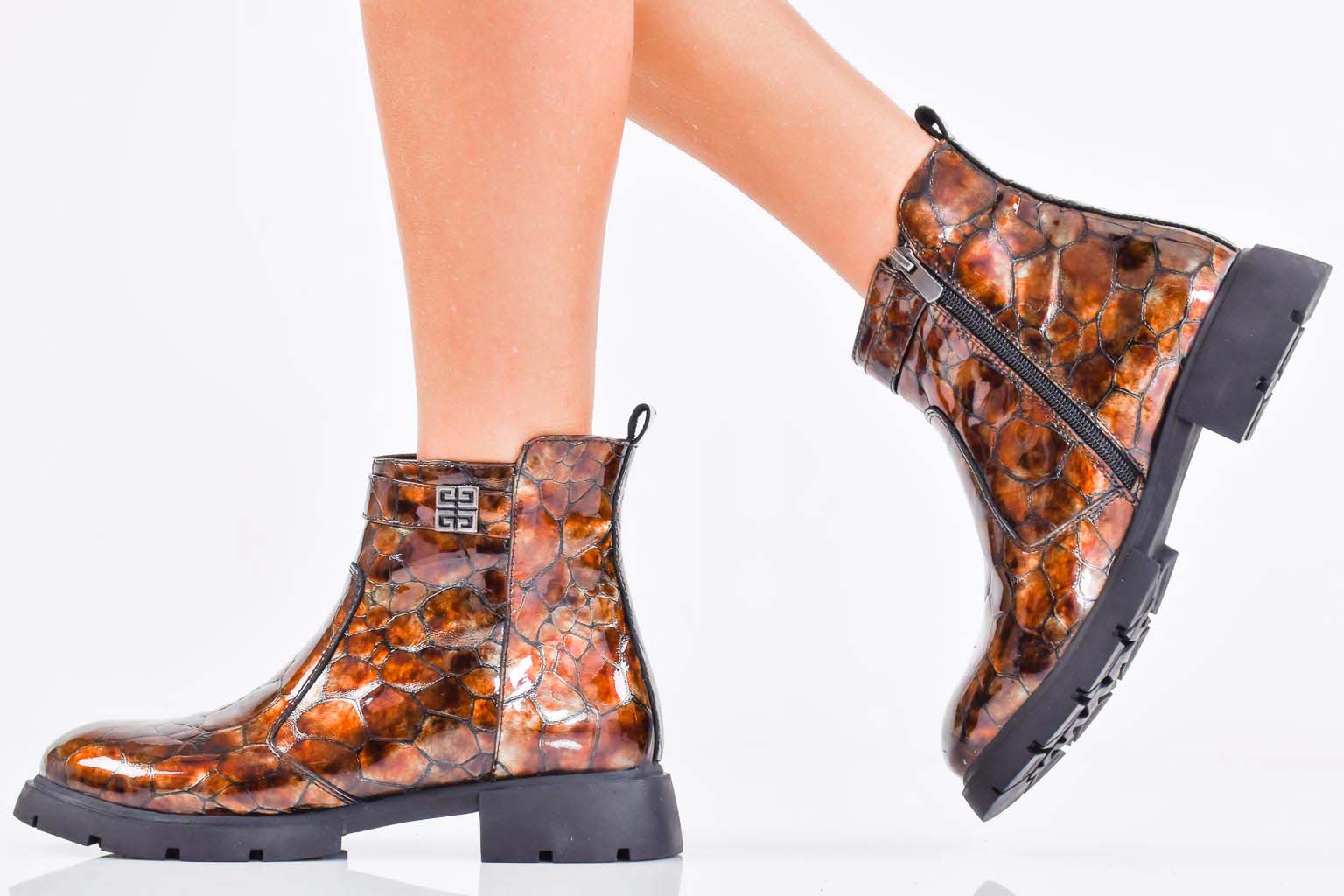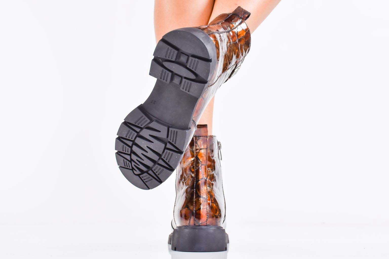 Дамски боти естествен лак бордо EOBUVKIBG #502-7407
