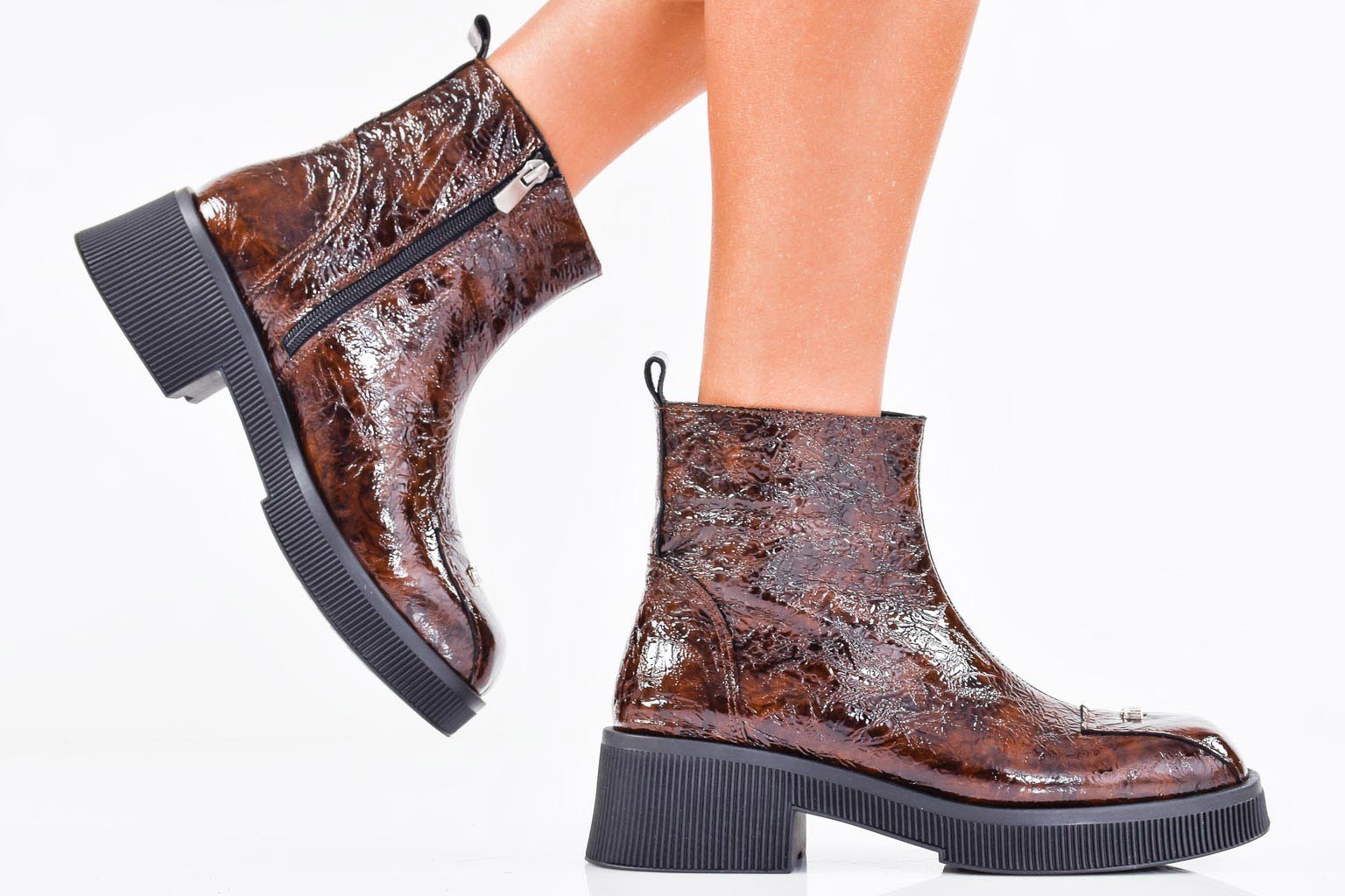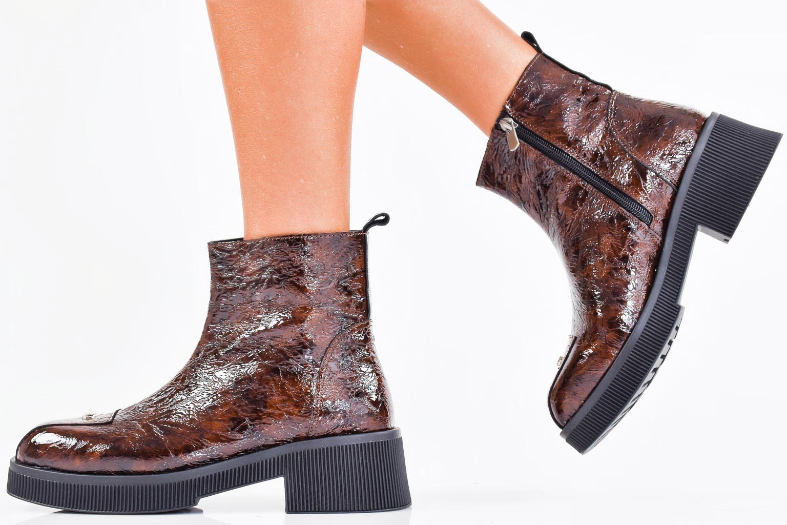 Дамски боти естествен лак кафяви EOBUVKIBG #502-7102