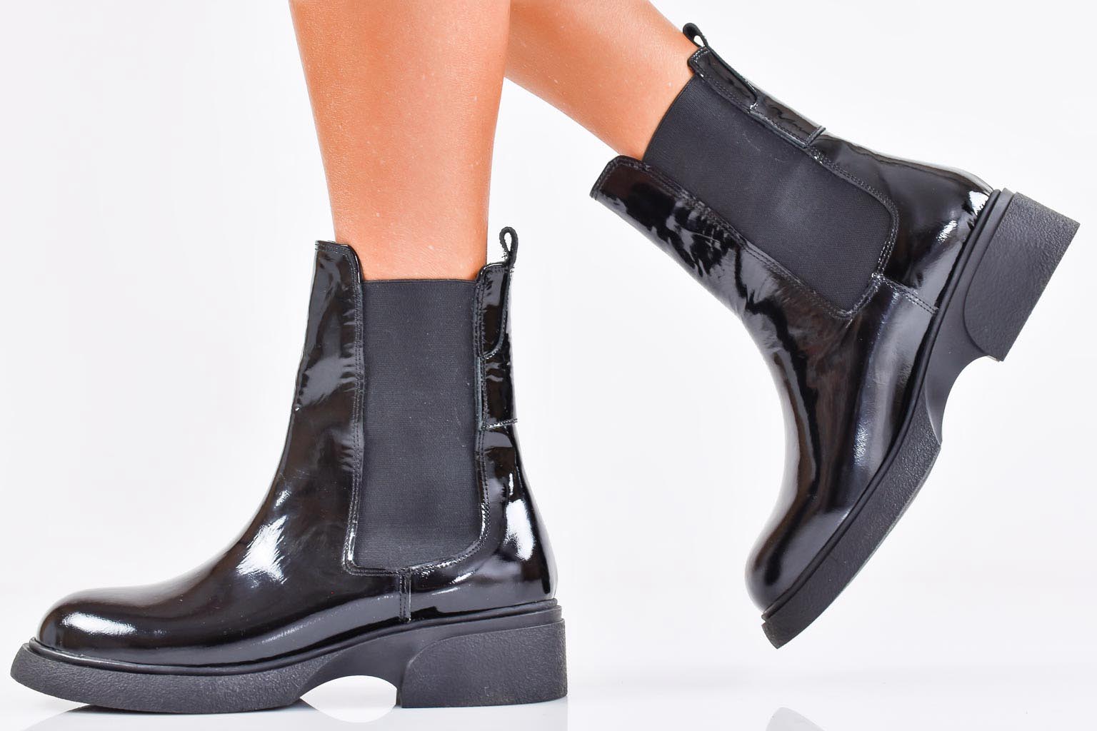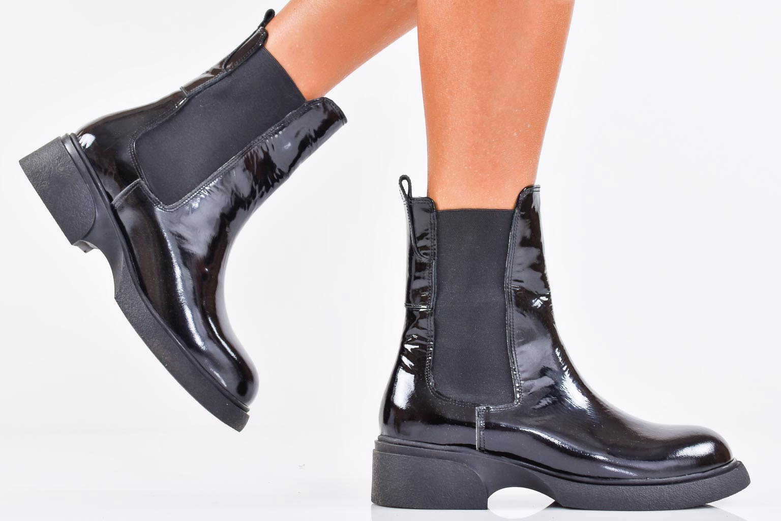Дамски боти естествен лак черни EOBUVKIBG #502-6958