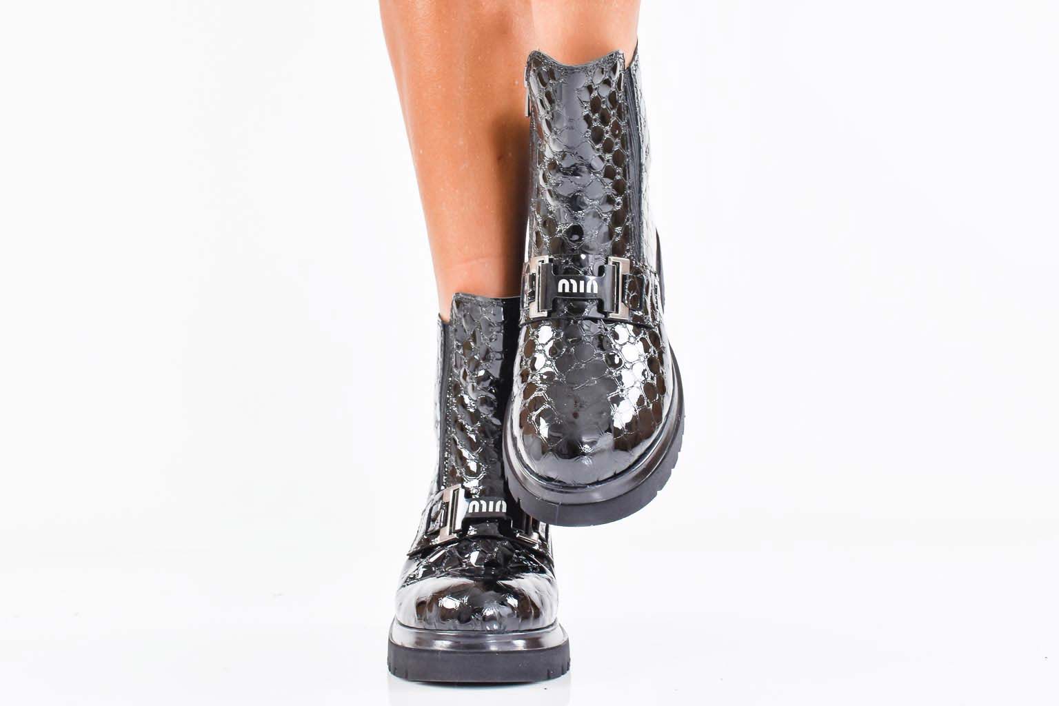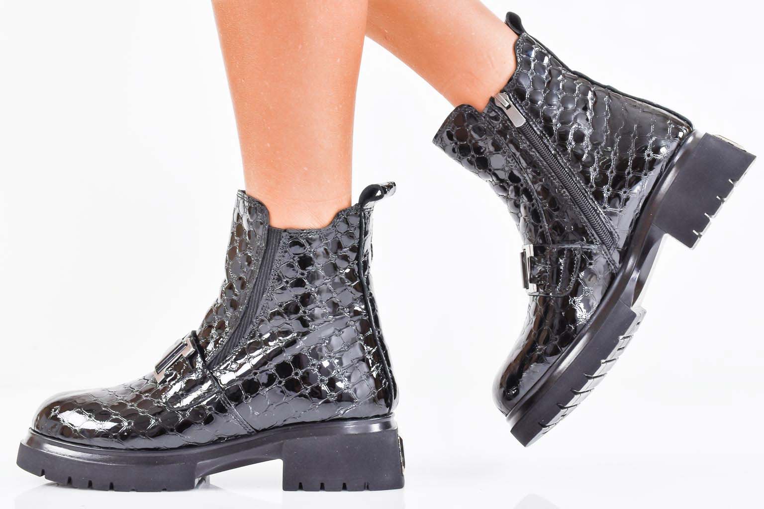 Дамски боти естествен лак черни EOBUVKIBG #502-7343