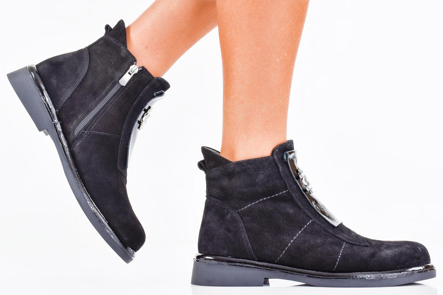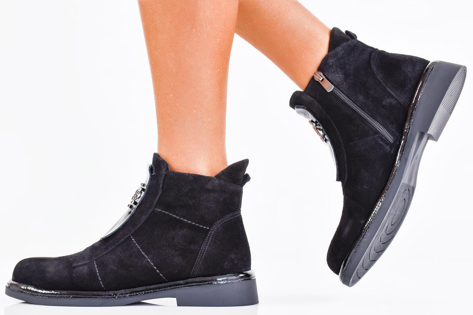Дамски боти естествен набук черни EOBUVKIBG #502-7081