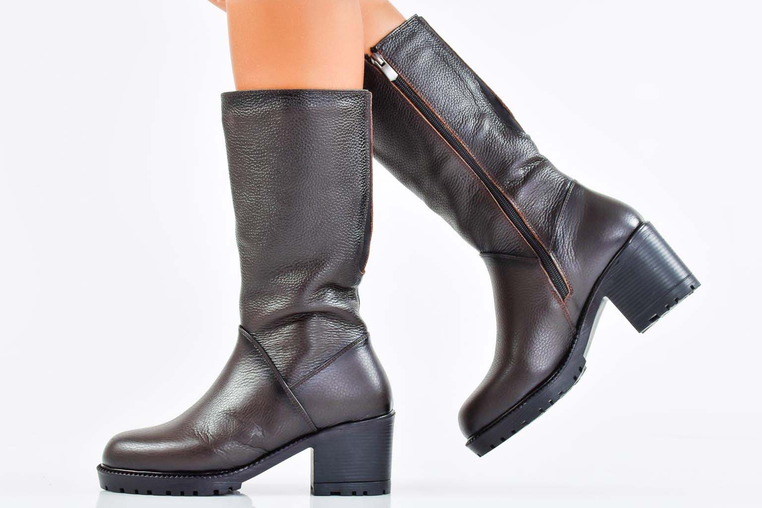 Дамски ботуши естествена кожа кафяви EOBUVKIBG #502-7486