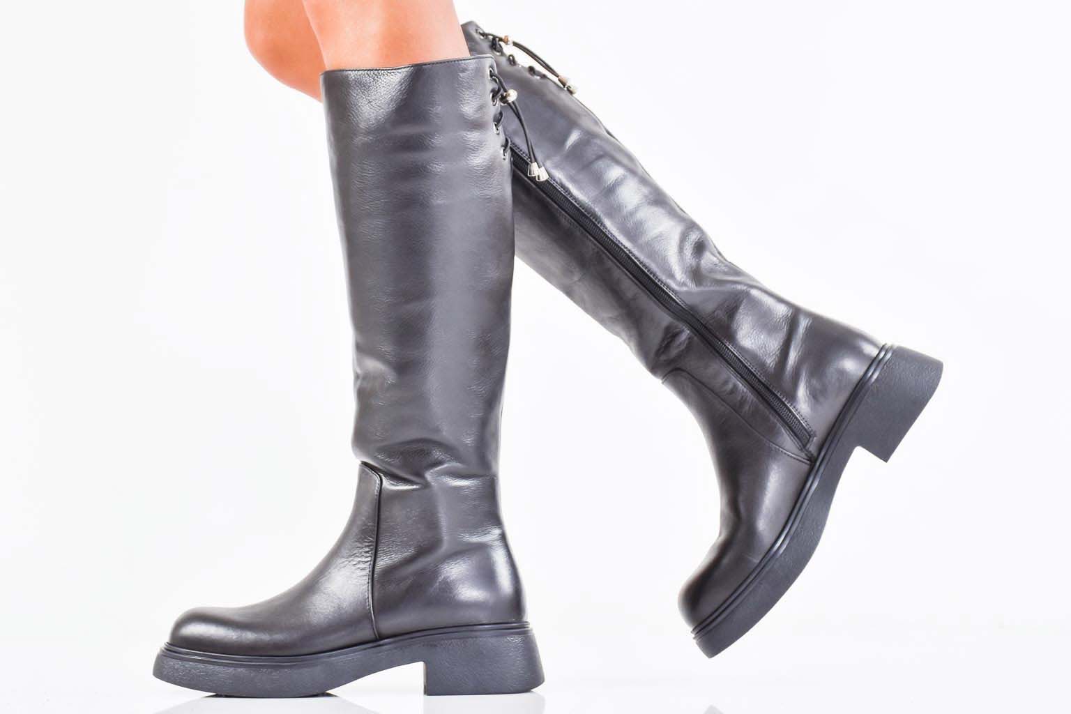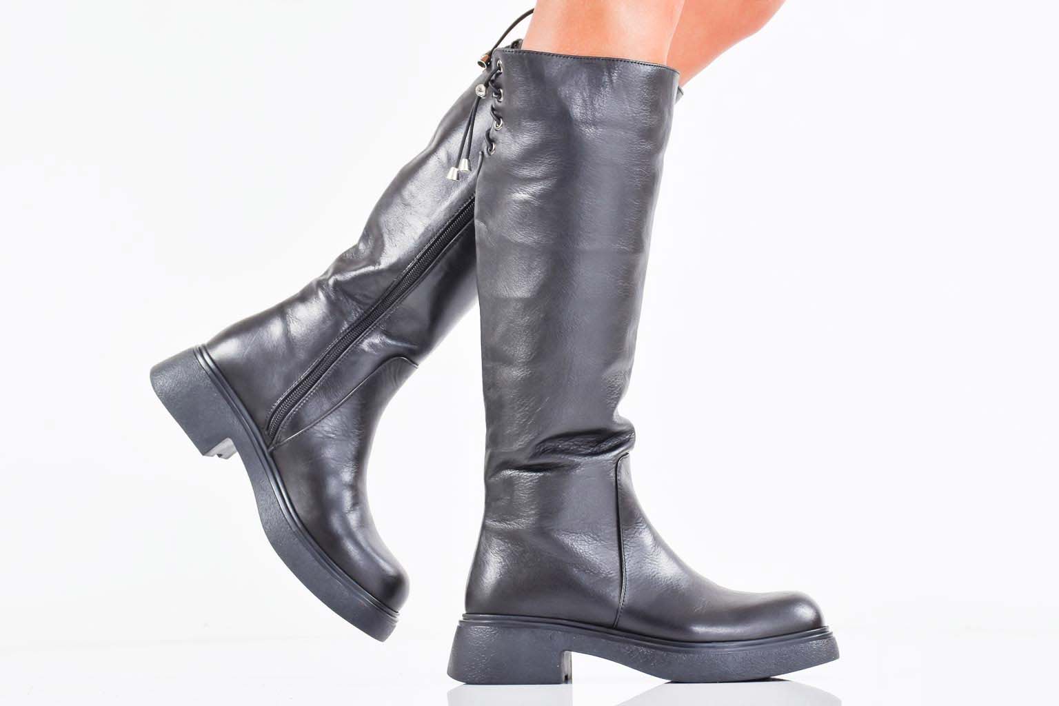 Дамски ботуши естествена кожа черни EOBUVKIBG #502-7394