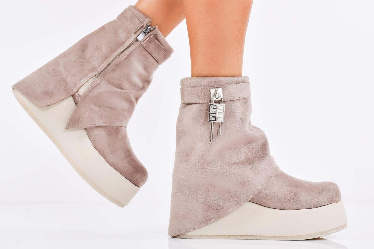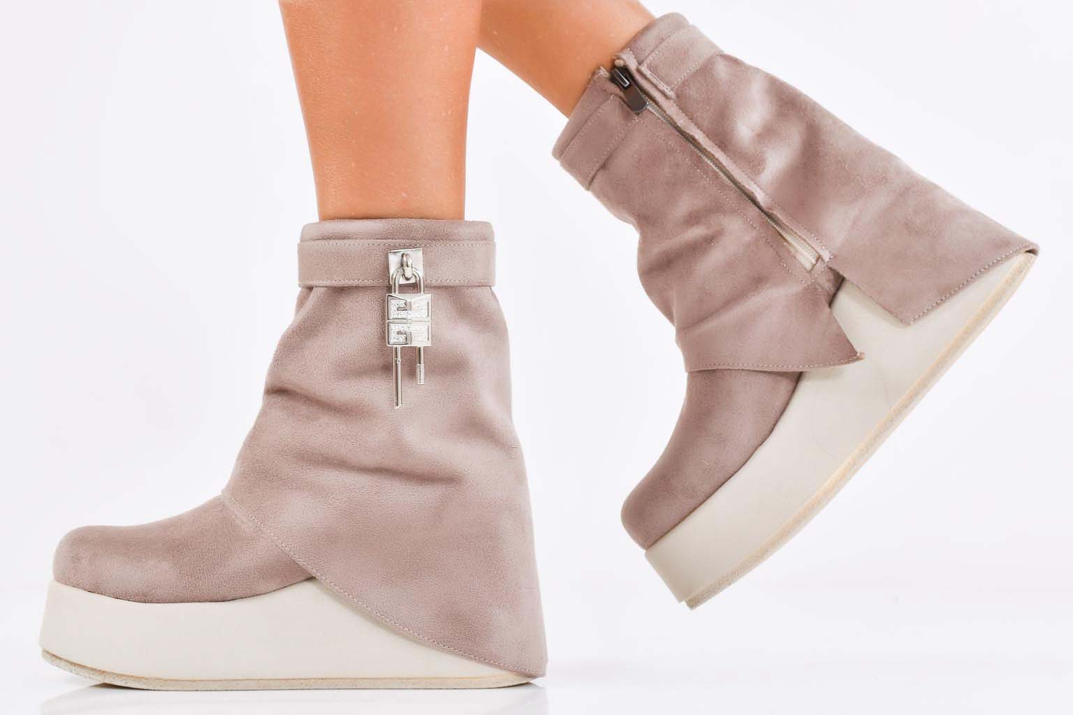Дамски боти на платформа бежови EOBUVKIBG #502-7283