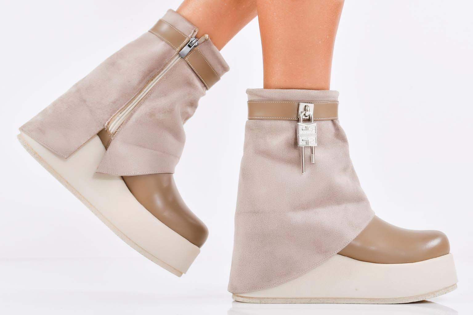 Дамски боти на платформа бежови EOBUVKIBG #502-7271