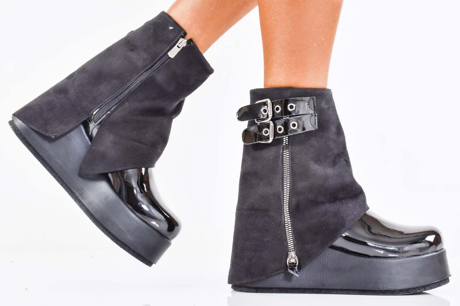 Дамски боти на платформа черни EOBUVKIBG #502-7293