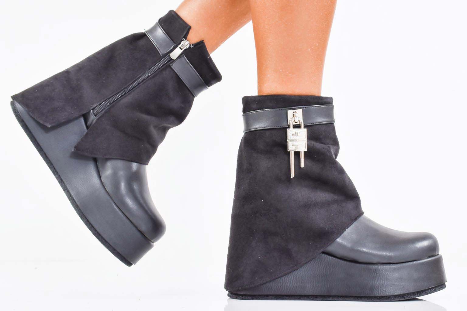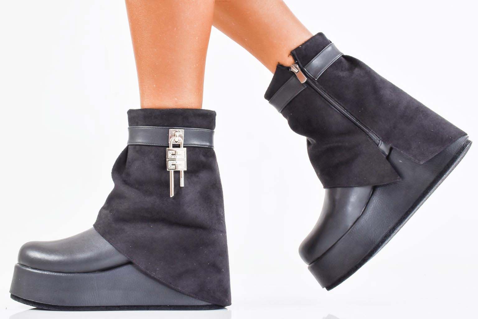 Дамски боти на платформа черни EOBUVKIBG #502-7294