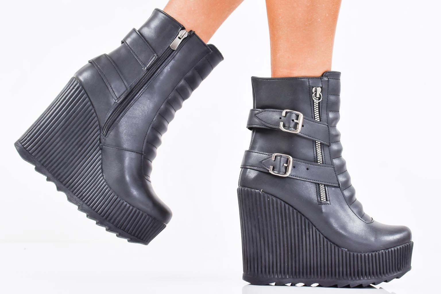 Дамски боти на платформа черни EOBUVKIBG #502-7279