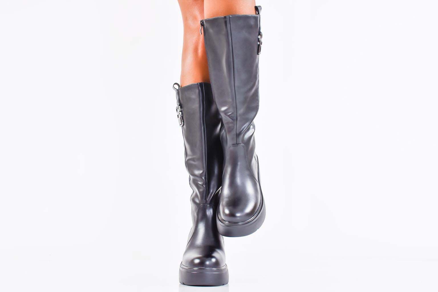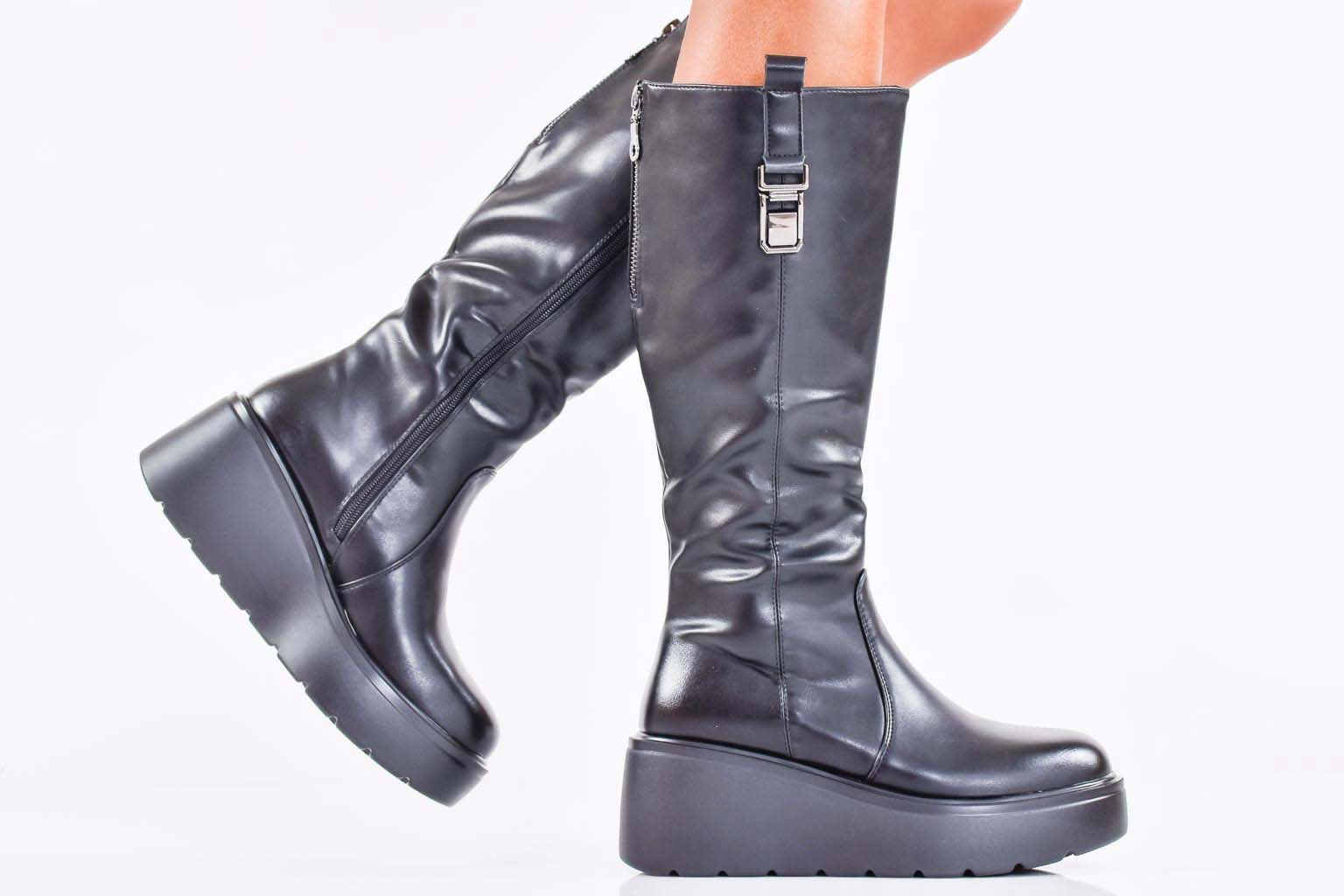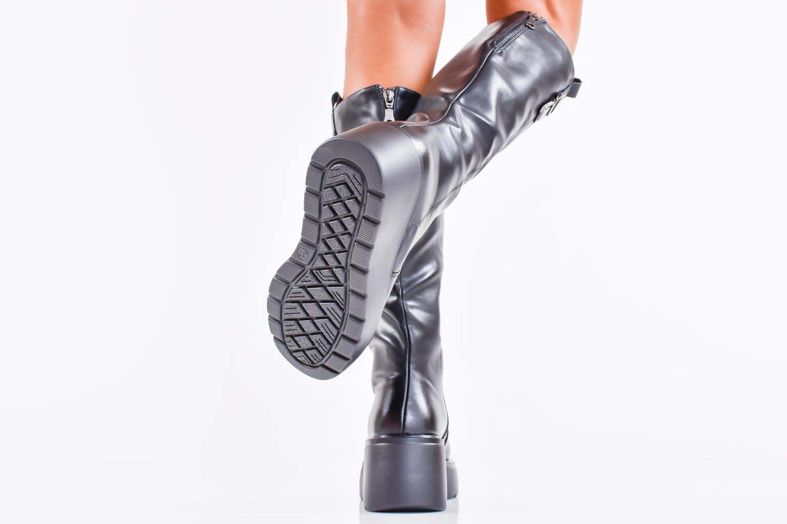 Дамски ботуши на платформа черни EOBUVKIBG #502-7152