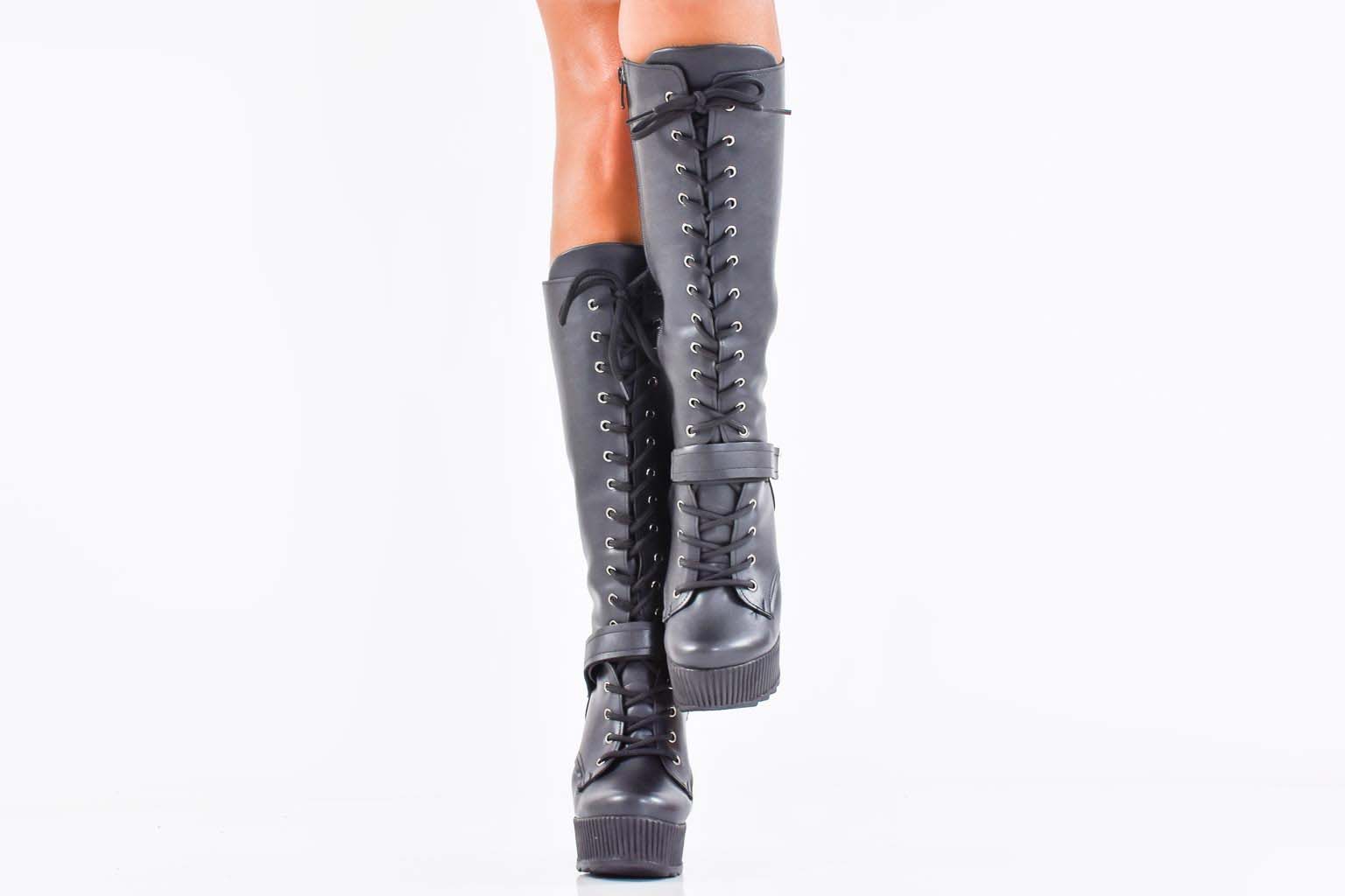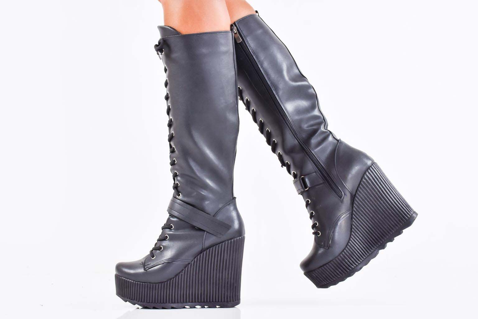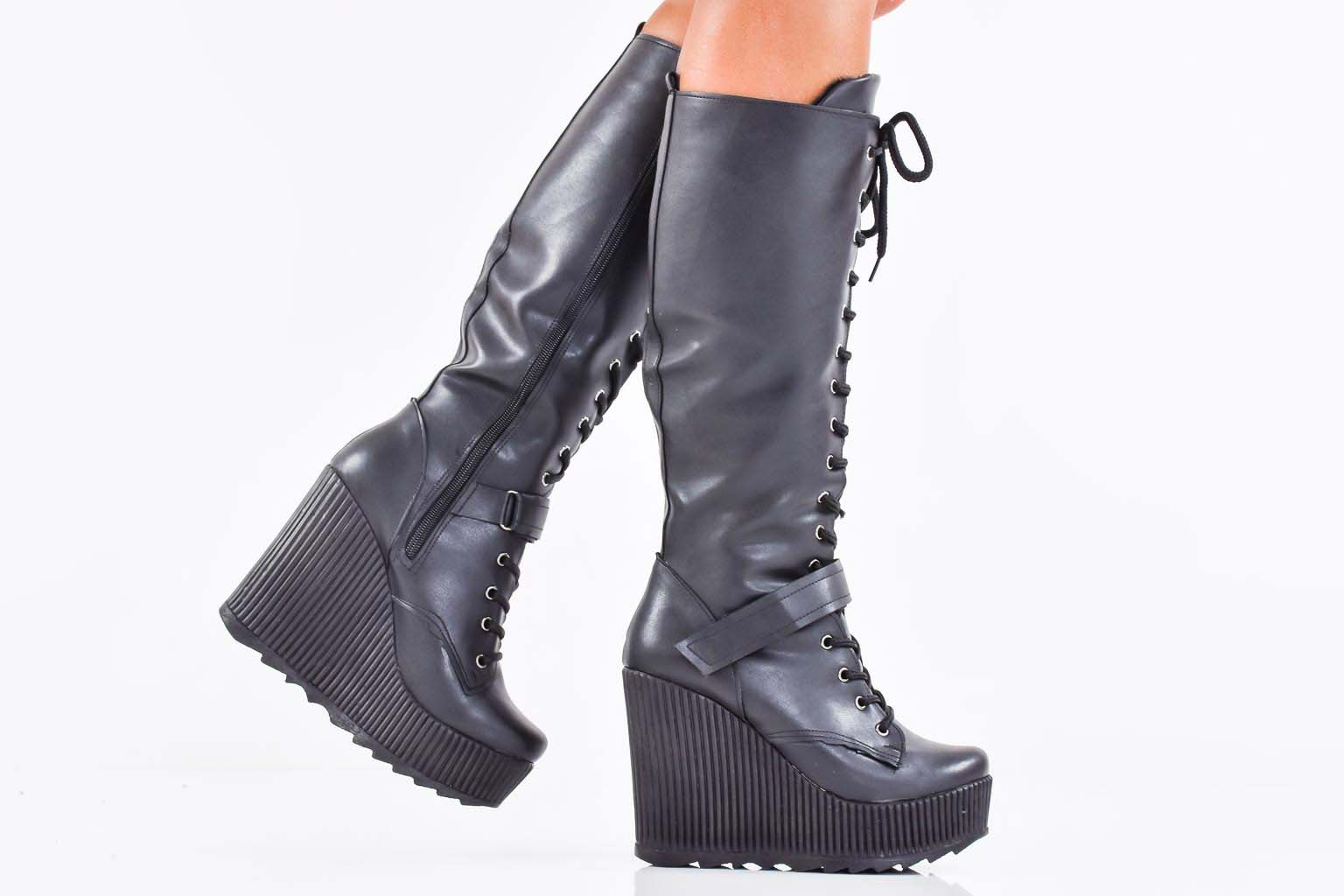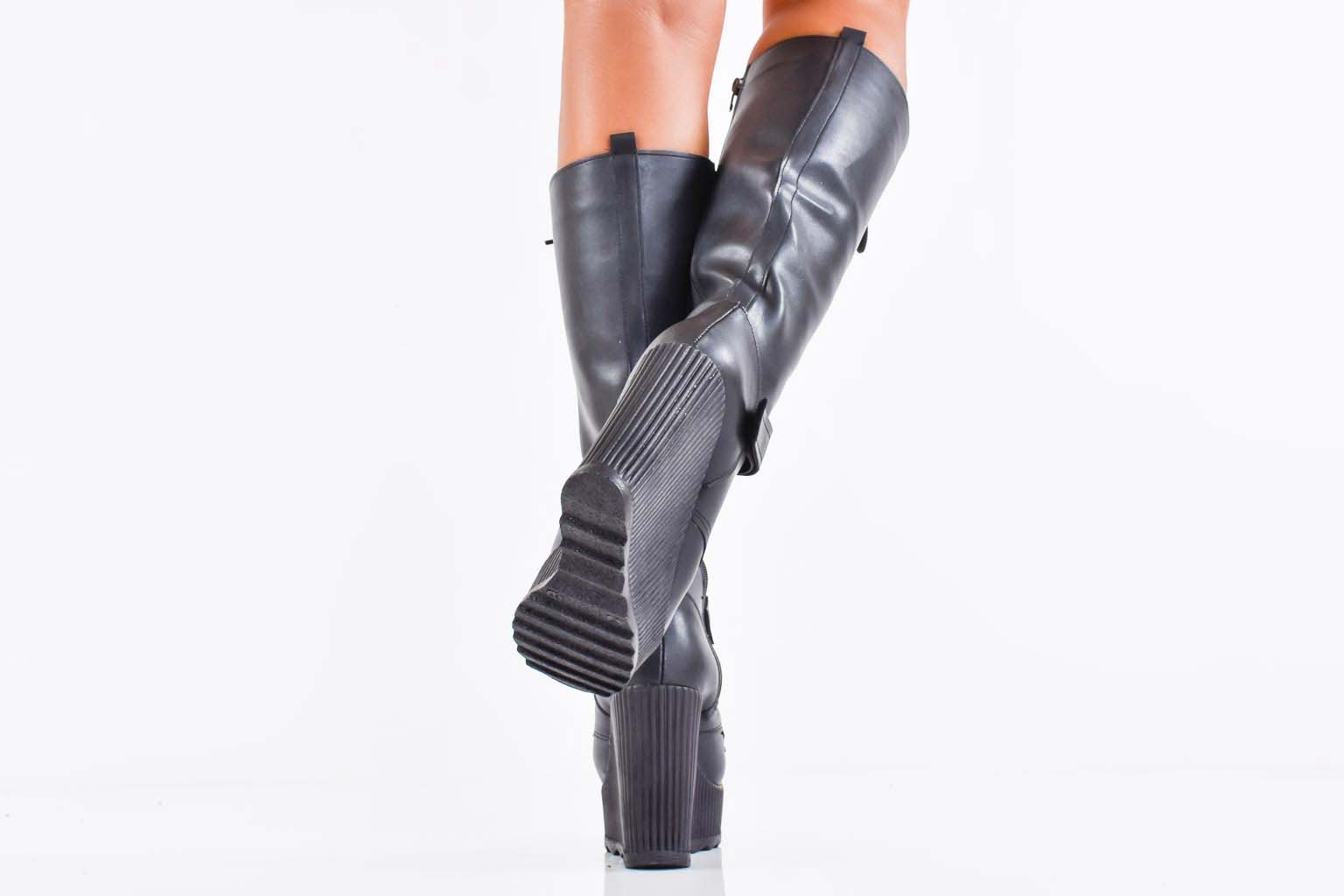 Дамски ботуши на платформа черни EOBUVKIBG #502-7270