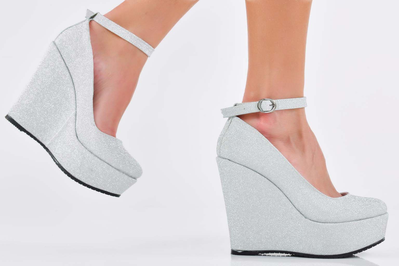 Дамски обувки на платформа сребристи EOBUVKIBG #502-7534