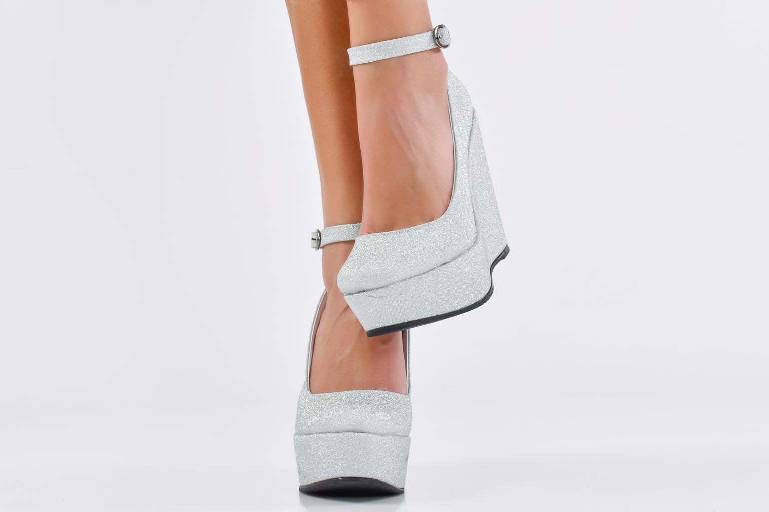 Представяме на Вашето внимание дамски елегантни обувки на платформа EOBUVKIBG 502-7534 в сребрист цвят .