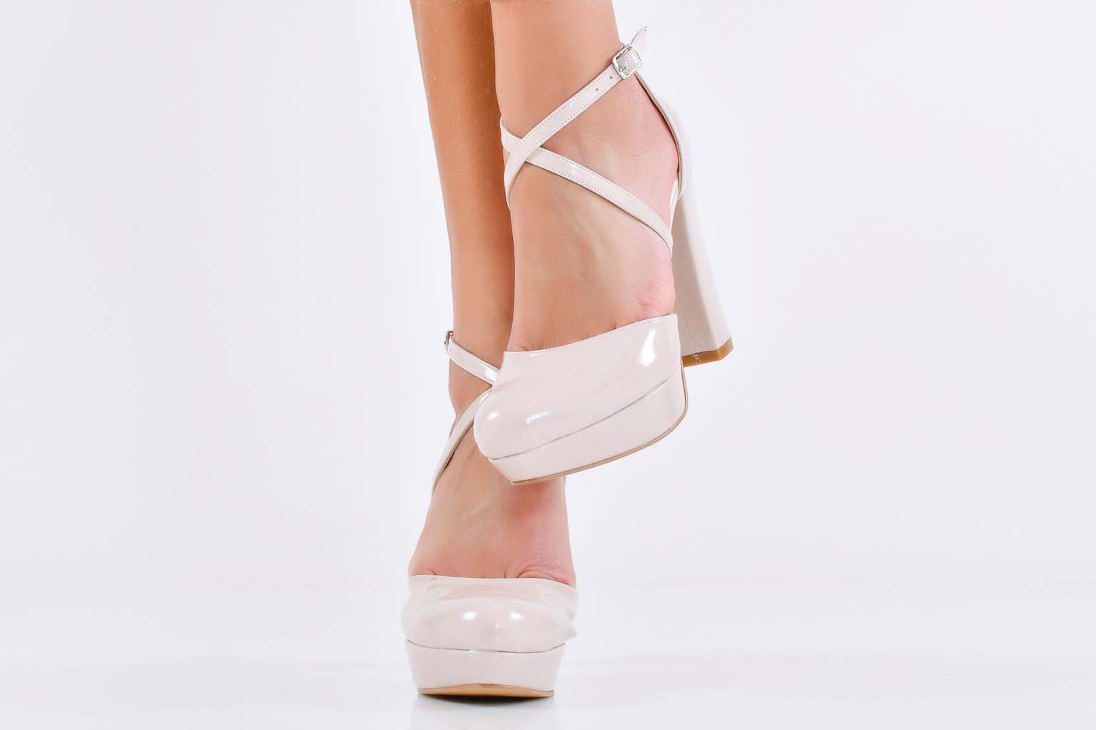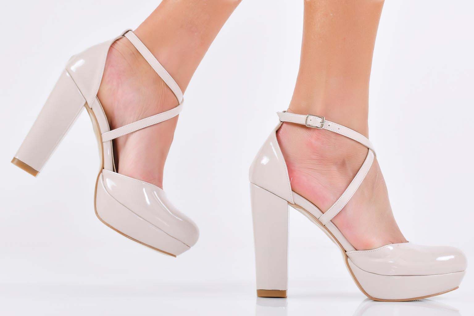 Характеристикa:Височина на ходилото в предната част: 2 см. Височина на тока 11 см. Цвят; Бежов. Номерация:35-39 Моделът е стандартен и отговаря на размерите. Тегло на модела размер 37: 331 грама.
