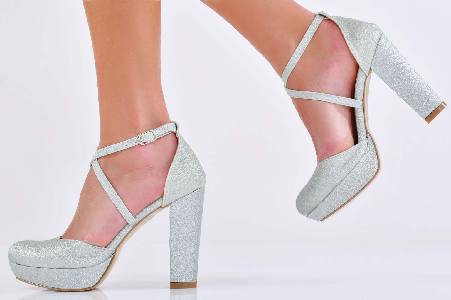 Характеристикa:Височина на ходилото в предната част: 2 см. Височина на тока 11 см. Цвят; Сребрист. Номерация:35-39 Моделът е стандартен и отговаря на размерите. Тегло на модела размер 37: 331 грама.