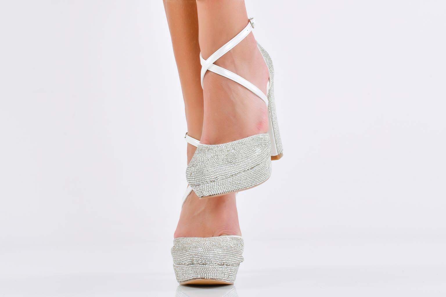 Характеристикa:Височина на ходилото в предната част: 2 см. Височина на тока 11 см. Цвят; Сребрист. Номерация:35-39 Моделът е стандартен и отговаря на размерите. Тегло на модела размер 37: 331 грама.