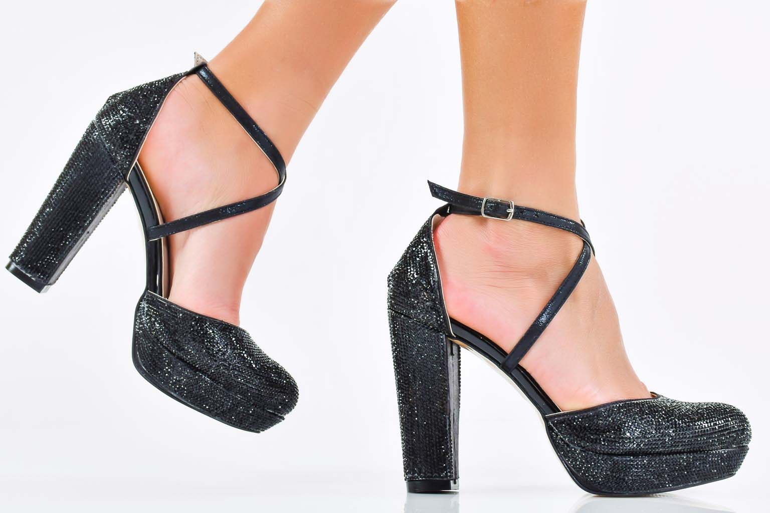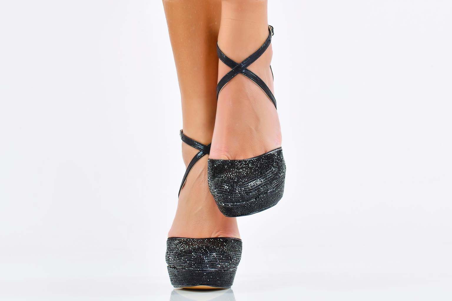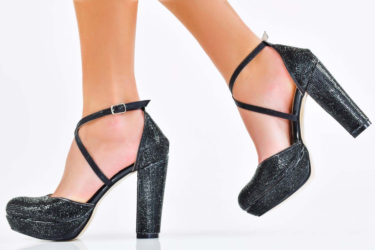 Характеристикa:Височина на ходилото в предната част: 2 см. Височина на тока 11 см. Цвят; Черен. Номерация:35-39 Моделът е стандартен и отговаря на размерите. Тегло на модела размер 37: 331 грама.