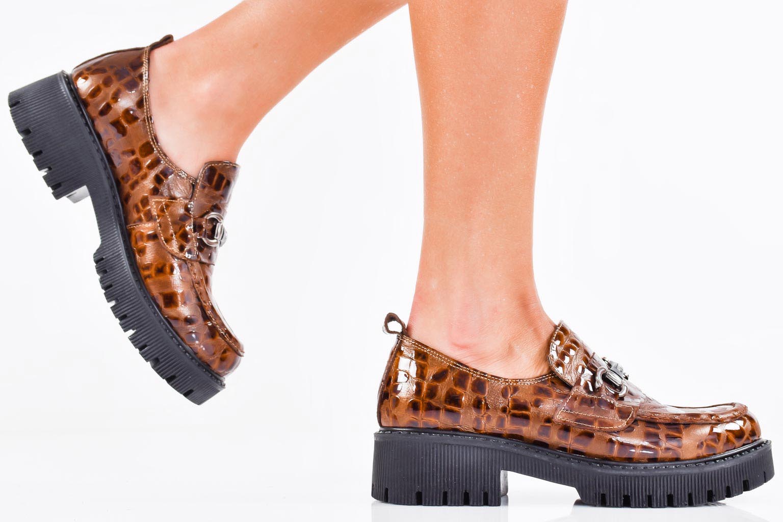 Имаме удоволствието да Ви представим нов модел дамски лоуфъри EOBUVKIBG 502-7104 изработени изцяло от естествен лак. Стелката е мека анатомична и комфортна,изработена изцяло от естествена кожа. Вътрешна част – естествен кожен хастар. Ортопедична “дишаща” стелка от естествена кожа е гарант за мекота и оптимална опора за свода на стъпалото, поддържайки го в правилната позиция при продължително ходене. Характеристика:Материал :Естествен лак. Височина на ходилото отпред: 2 см. Височина на ходилото отзад; 5 см. Цвят:Кафяв.Номерация:36-40 Тегло на модела 37 номер 350 грама. Моделът е стандартен и отговаря на размерите.