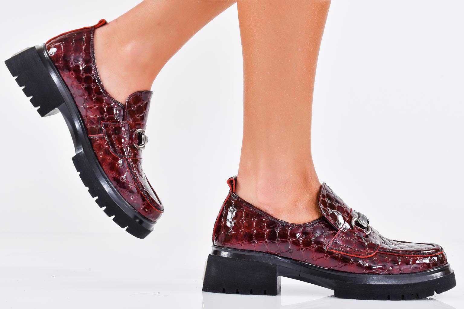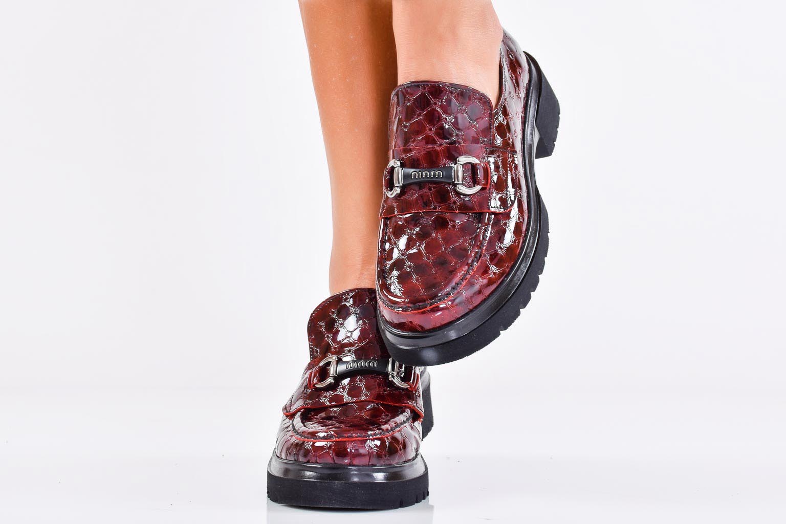 Дамски обувки естествен лак бордо EOBUVKIBG #502-6931
