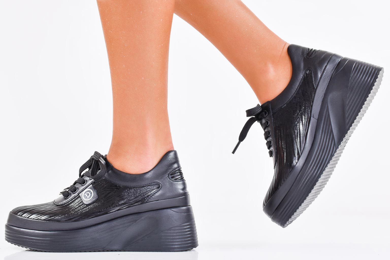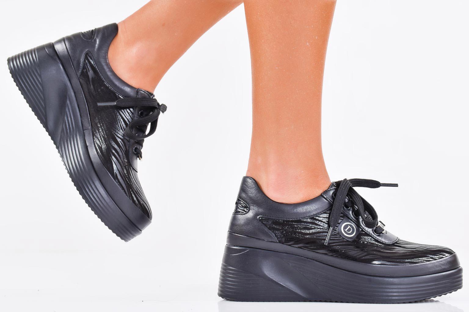 Имаме удоволствието да Ви представим нов модел дамски обувки на платформа EOBUVKIBG 502-6935 в черен цвят изработени изцяло от естествена кожа. Стелката е мека анатомична и комфортна,изработена изцяло от сатен. Модела е с връзки които улесняват обуването. Ортопедичната “дишаща” стелка е гарант за мекота и оптимална опора за свода на стъпалото, поддържайки го в правилната позиция при продължително ходене.Характеристика:Материал:Естествена кожа. Височина на платформата отпред: 2,5 см. Височина на платформата в задната част 5,5 см. Цвят: Черен. Номерация:36-40 Тегло на модела 37 размер : 280 грама. Моделът е стандартен и отговаря на размерите.